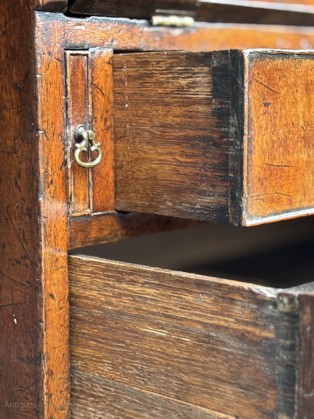 The figured mahogany exhibits a rich, warm patina. This bureau is not only a testament to exceptional craftsmanship but also a stunning example of early Georgian design, making it an ideal piece for any refined interior. Its combination of practicality and aesthetic charm makes it an ideal addition to any traditional or contemporary setting.