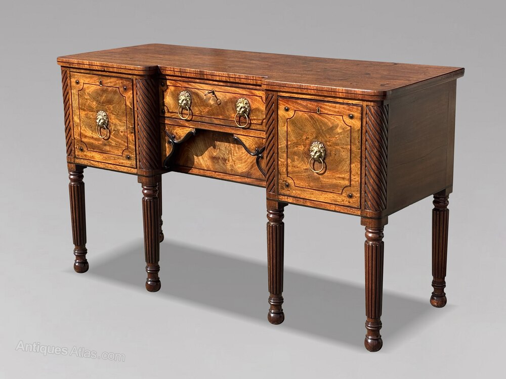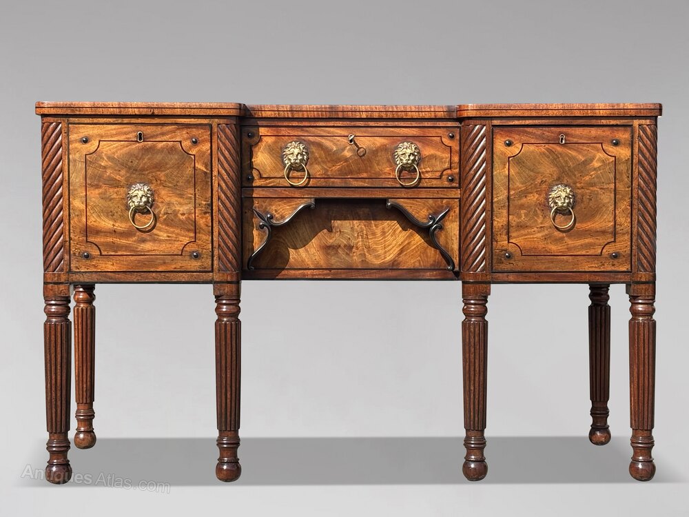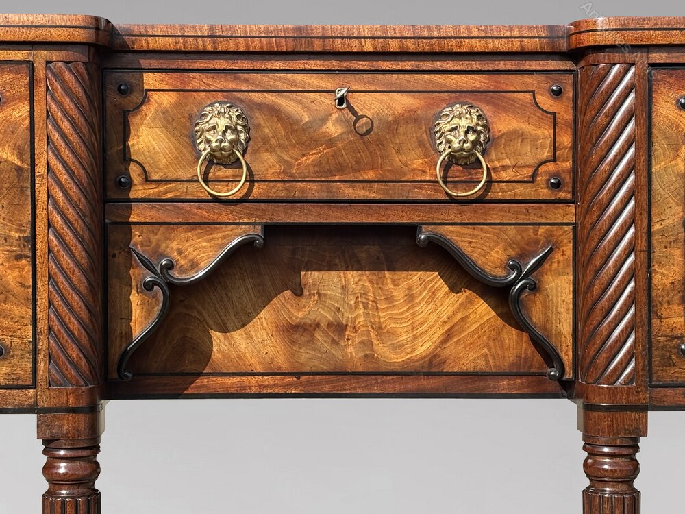 A Fine George IV Period Mahogany and Ebony Inverted Breakfront Sideboard, England, circa 1825A superb early 19th-century George IV period mahogany and ebony line inlaid inverted breakfront sideboard of excellent quality, constructed throughout from well chosen timbers and veneers and retaining a rich, original colour and patina.