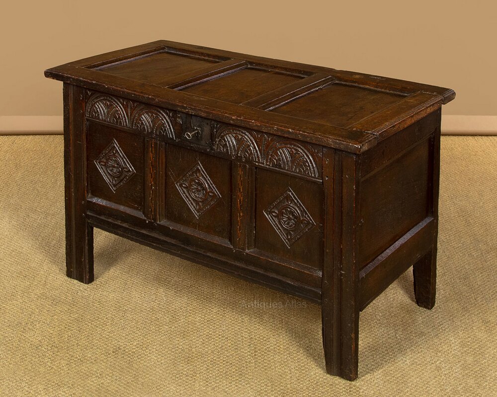 17th.c. Carved & Inlaid Oak Coffer c.1660