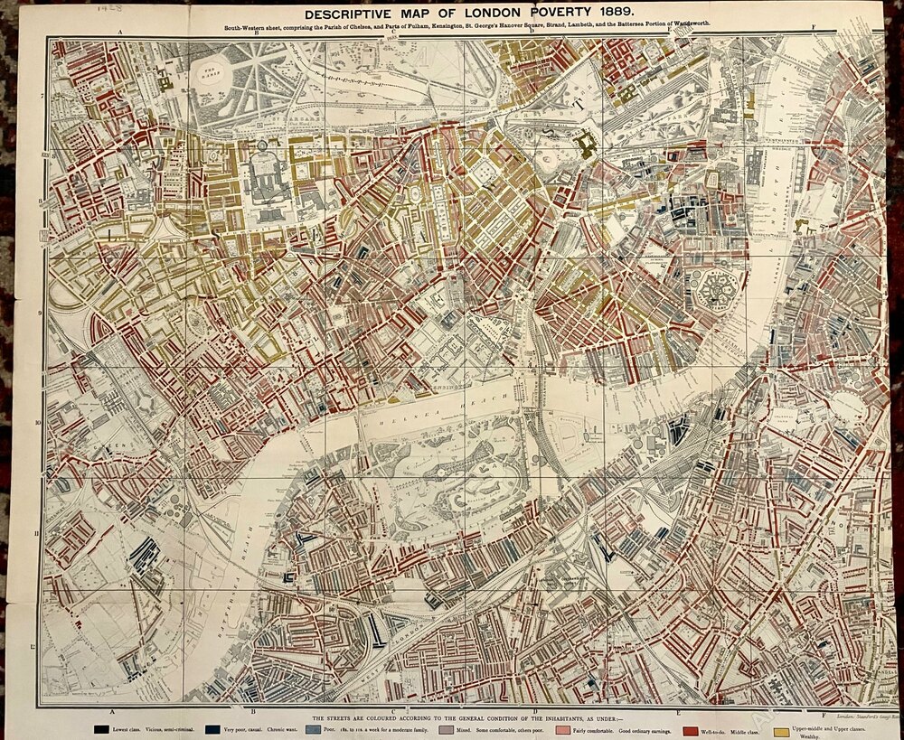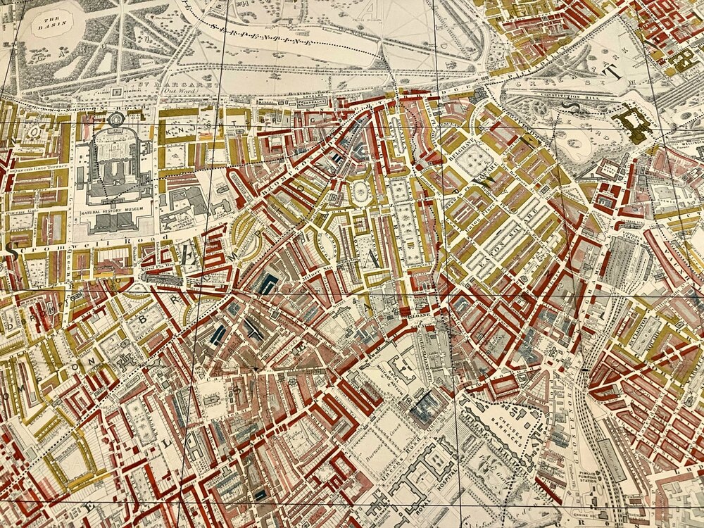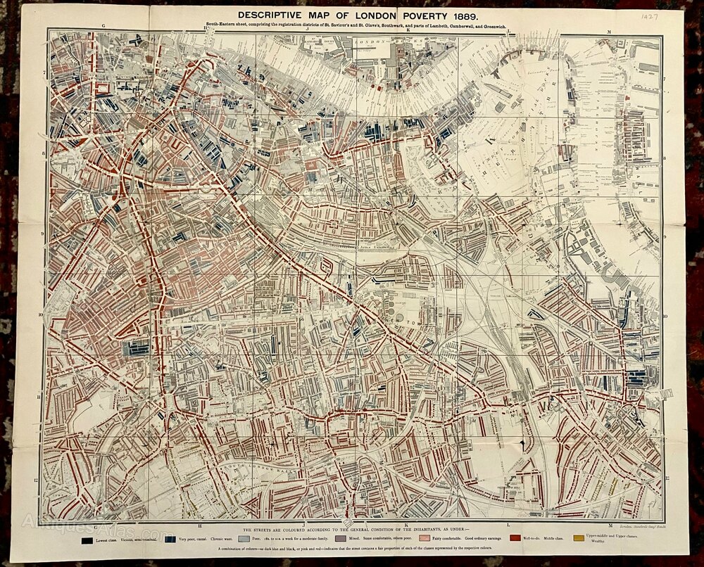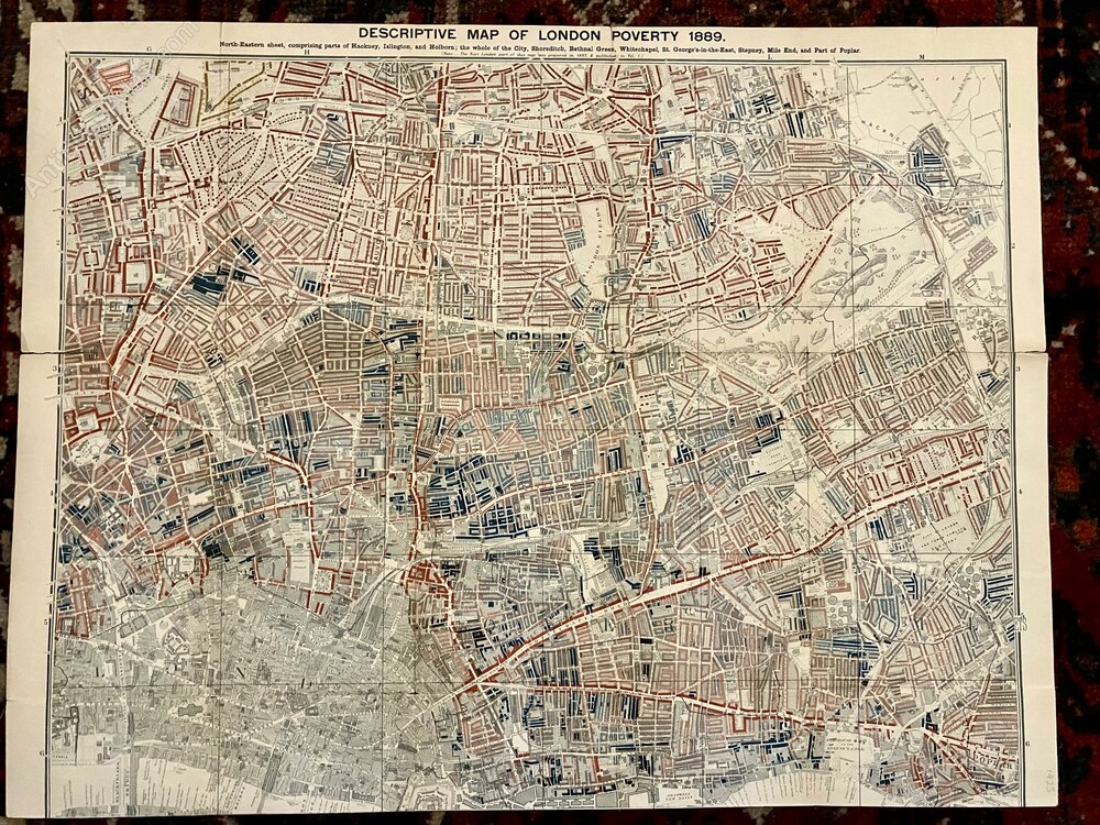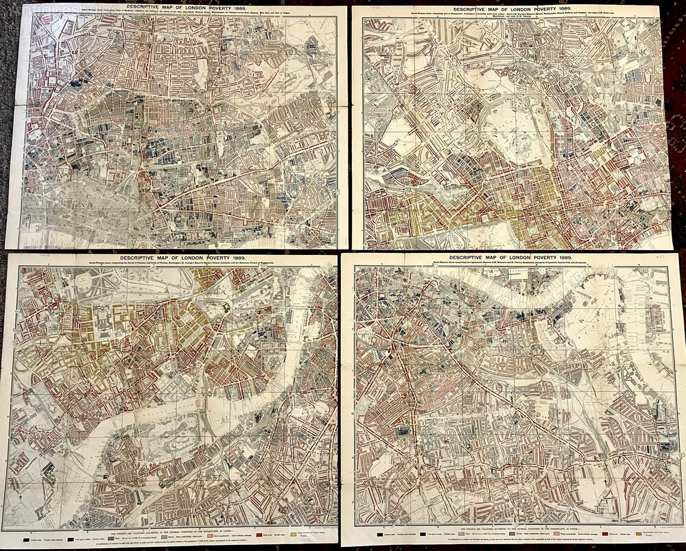 An Original Large Late 19th Century Lithographed Map With All Four Individual Parts in Sections & Laid Down on Linen as Issued.