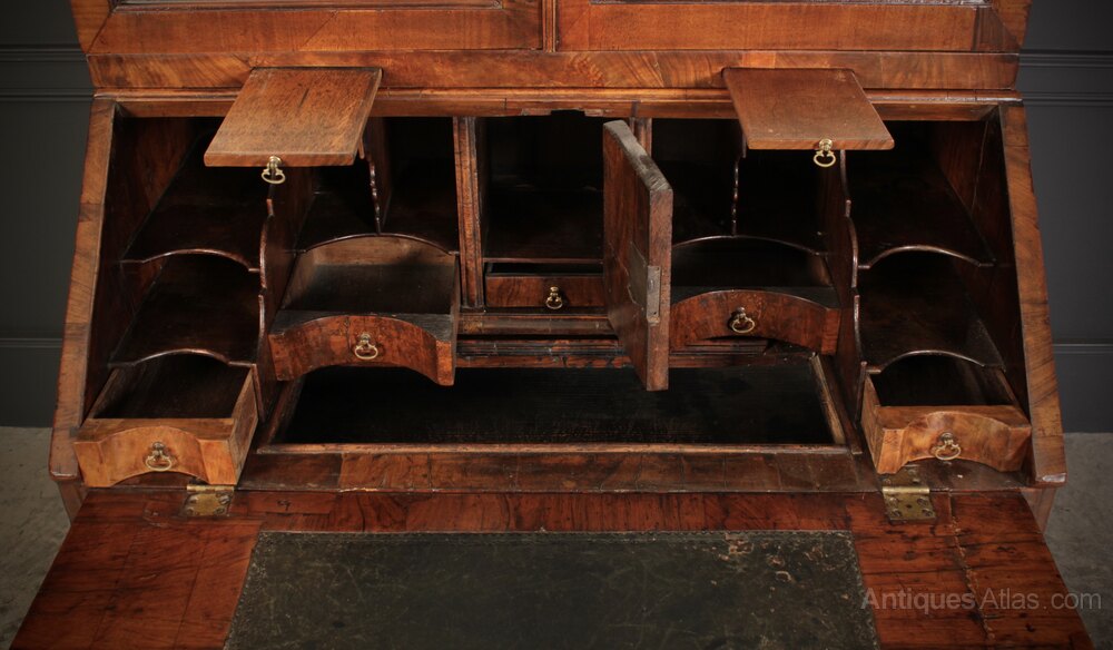 A superb early 18th century Queen Anne walnut bureau bookcase, circa 1710, showcasing exceptional craftsmanship and timeless elegance. This charming piece is presented in remarkably good condition for its age, with a warm, rich patina and beautifully figured walnut veneers throughout.