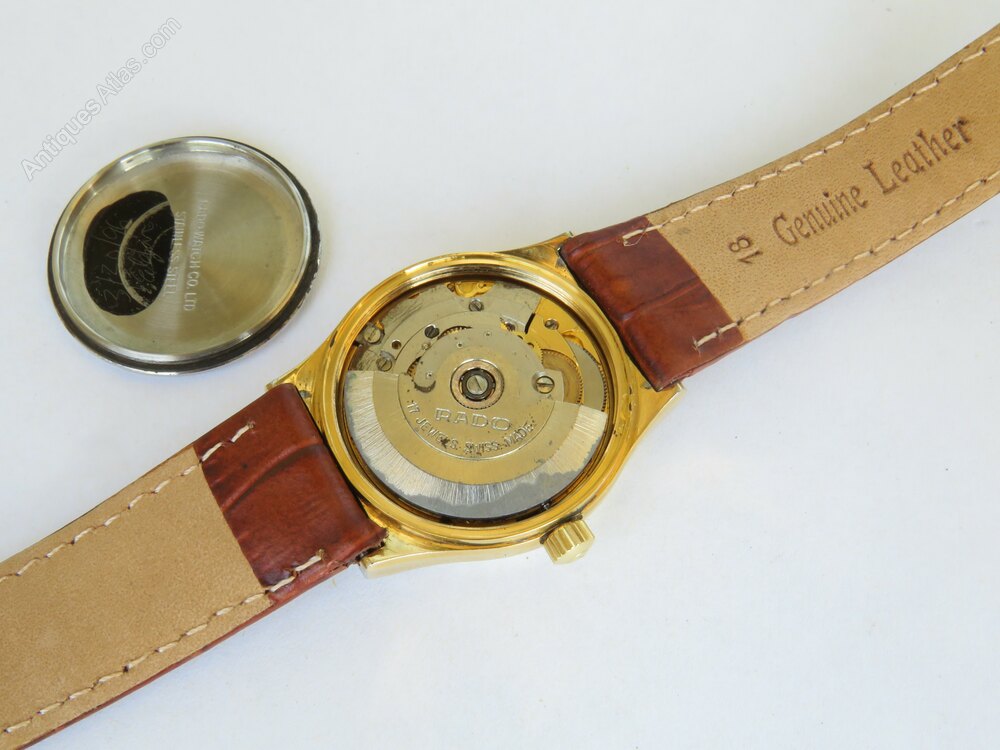The watch measures 31mm wide excluding the original Rado winding crown, and 35mm high. The case is gold tone with a stainless steel bezel and screw-on case back. The case is in good condition, just the odd mark but nothing serious at all.