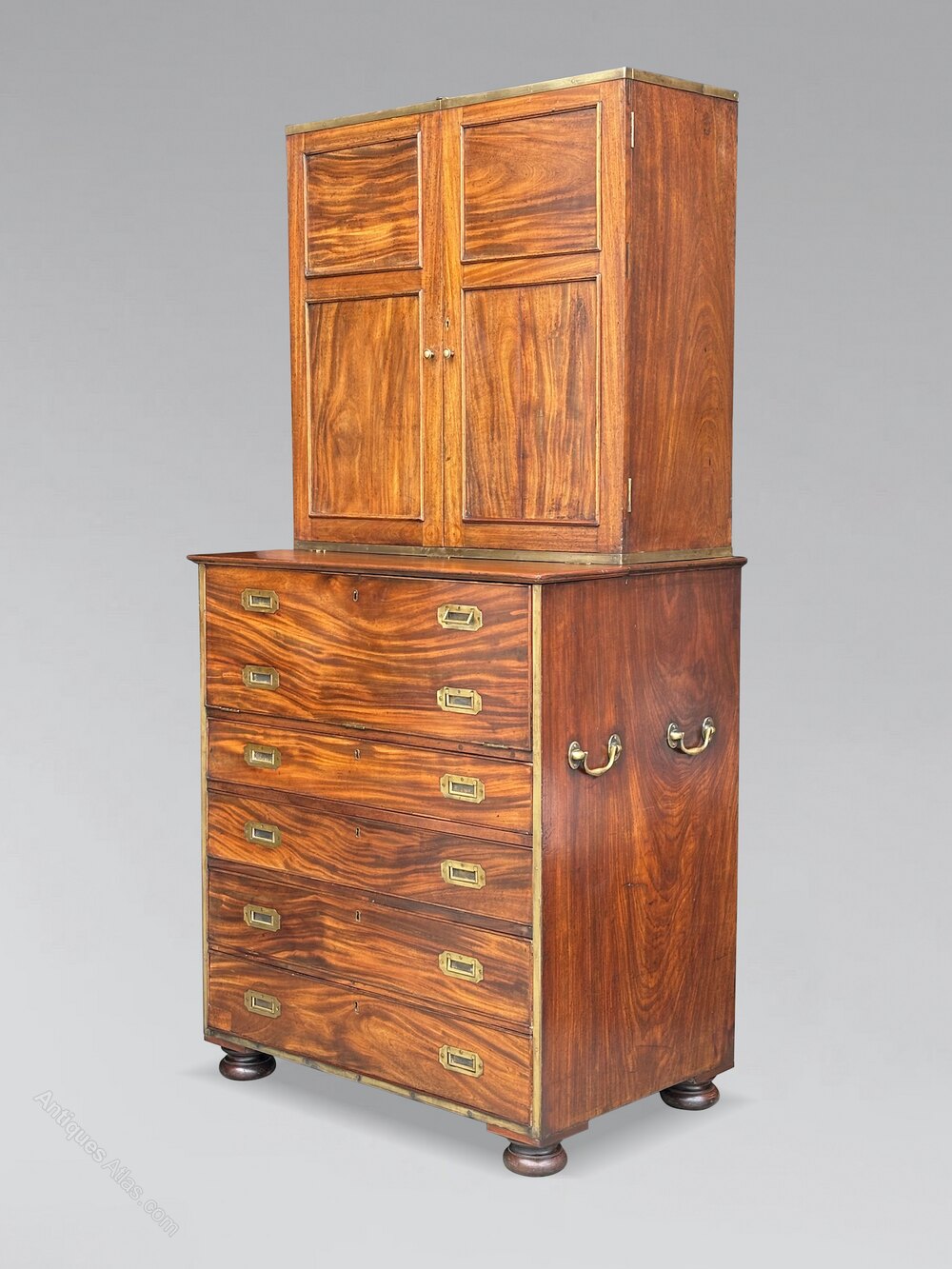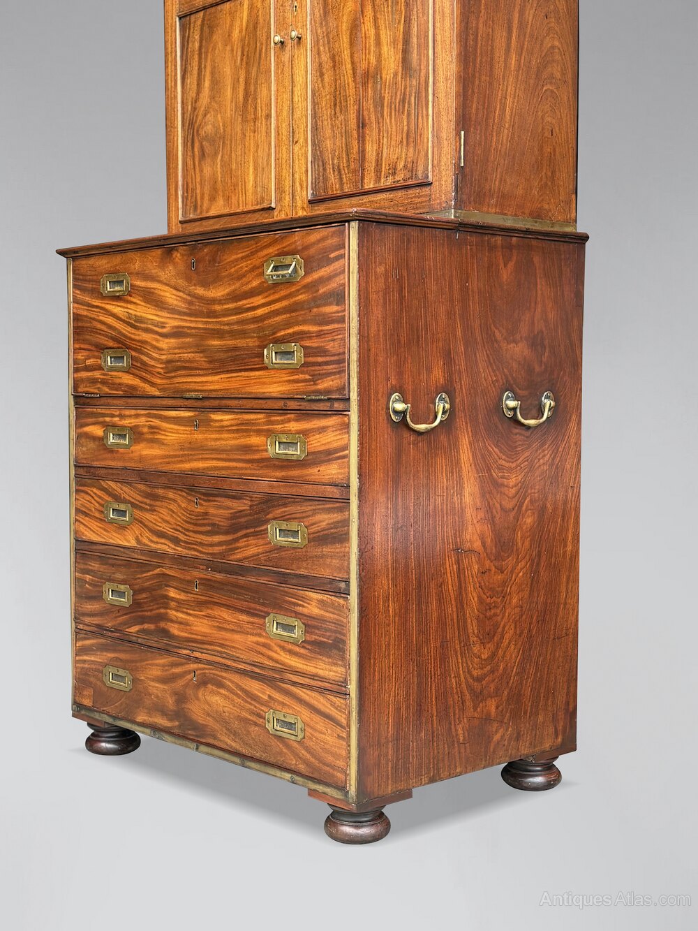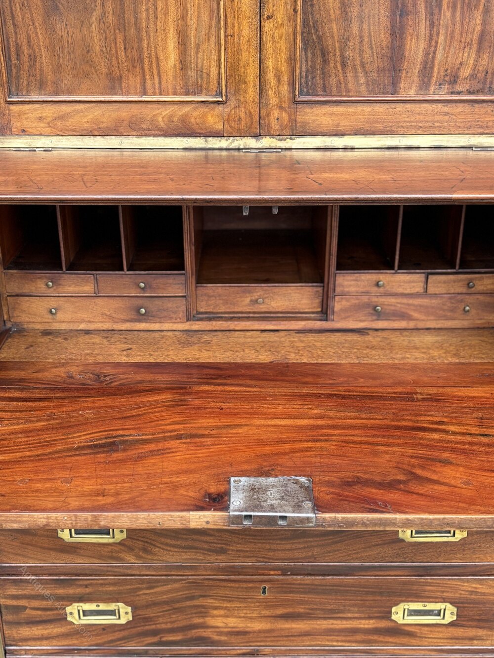 A Charming 19th Century Victorian Period two-part Mahogany Military Cabinet on Secretaire Chest