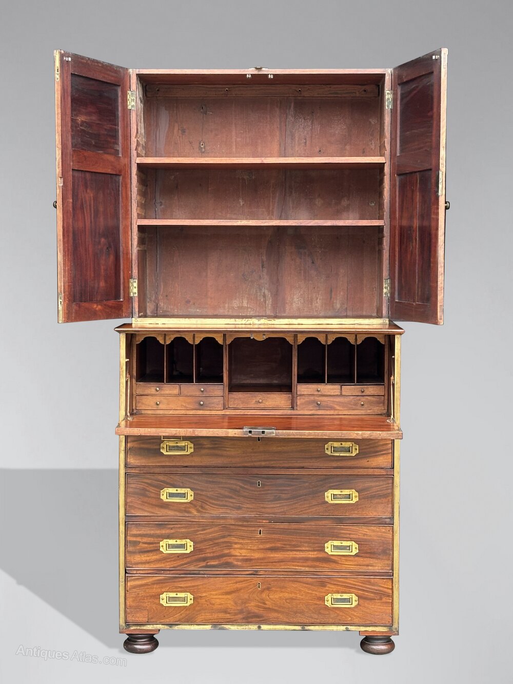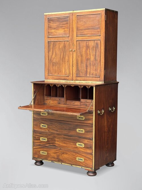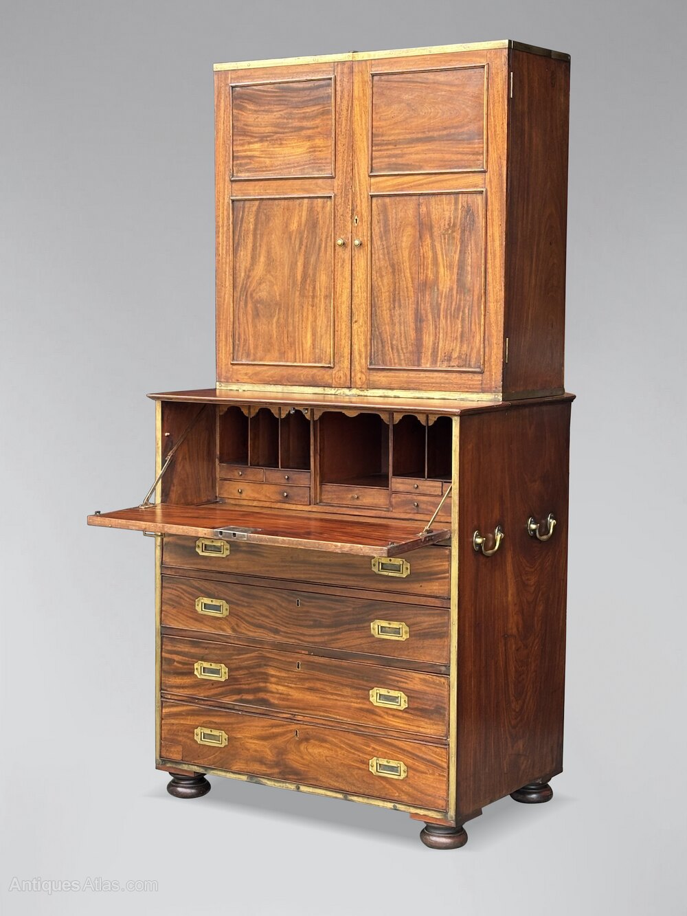 A Charming 19th Century Victorian Period two-part Mahogany Military Cabinet on Secretaire Chest