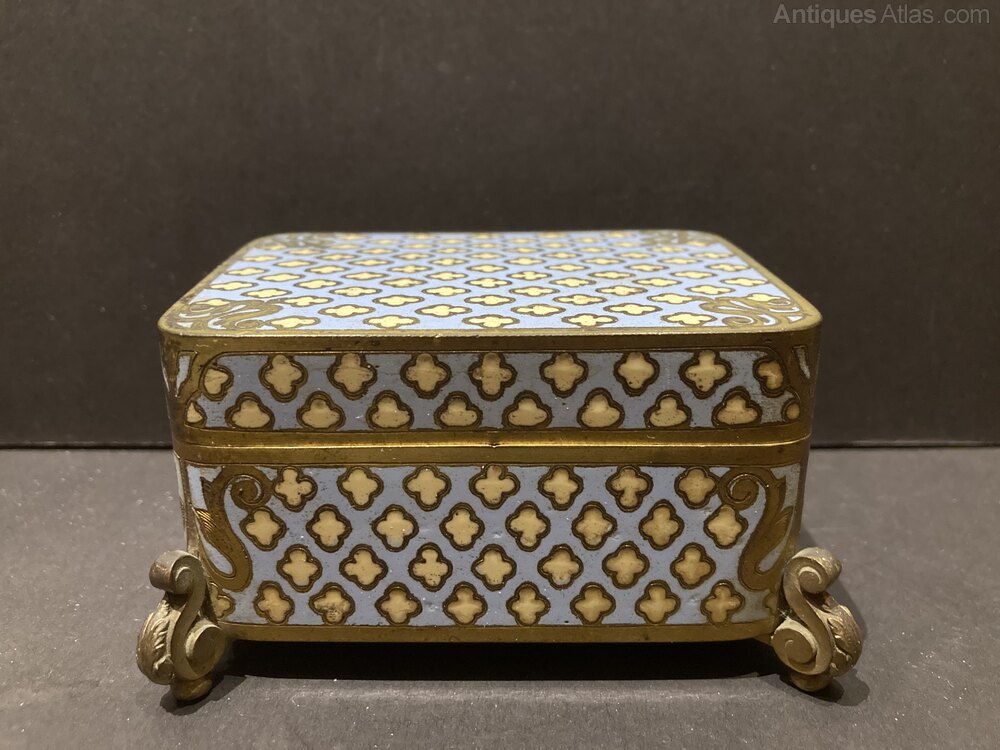 19thC French Bronze Champleve Enamel Jewellery Box