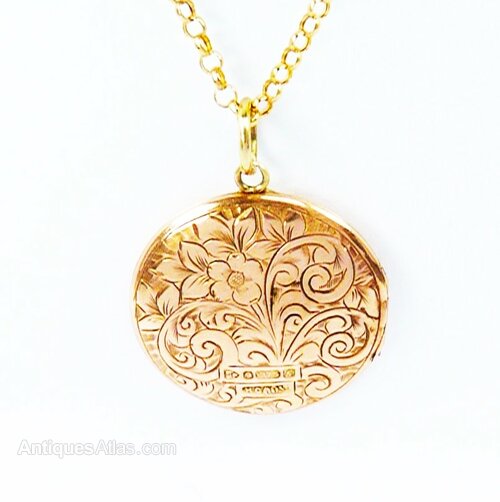 Solid Gold Art Nouveau Locket On 18 Necklace