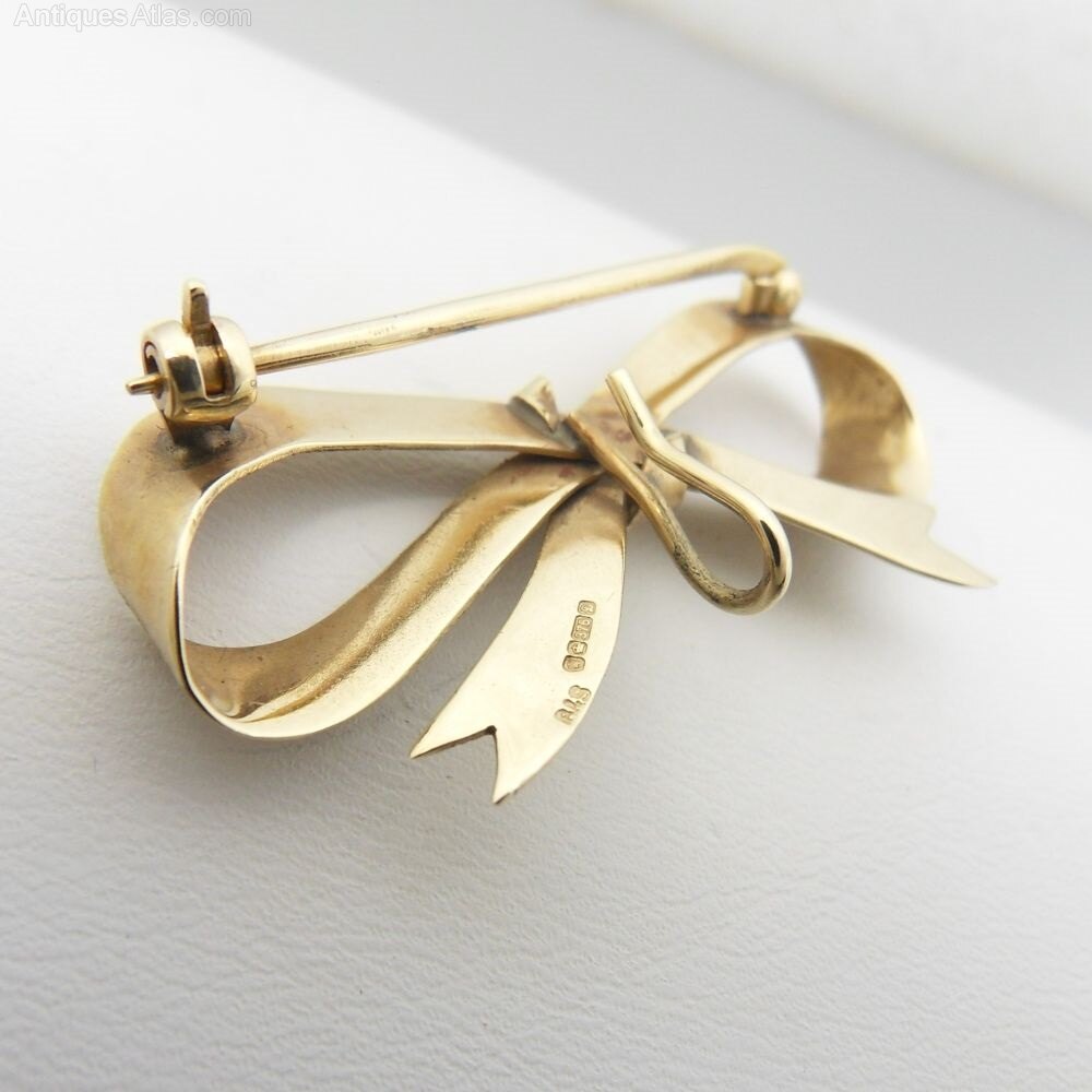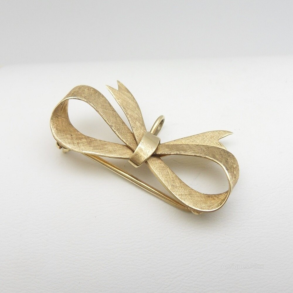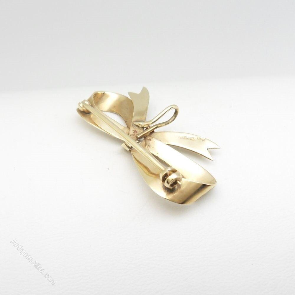 9ct gold bow design fob brooch hallmarked Sheffield 1978