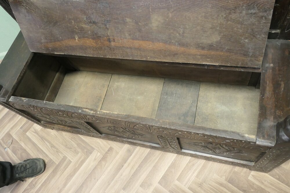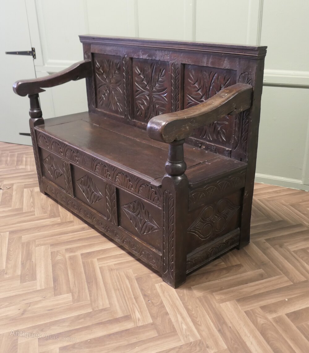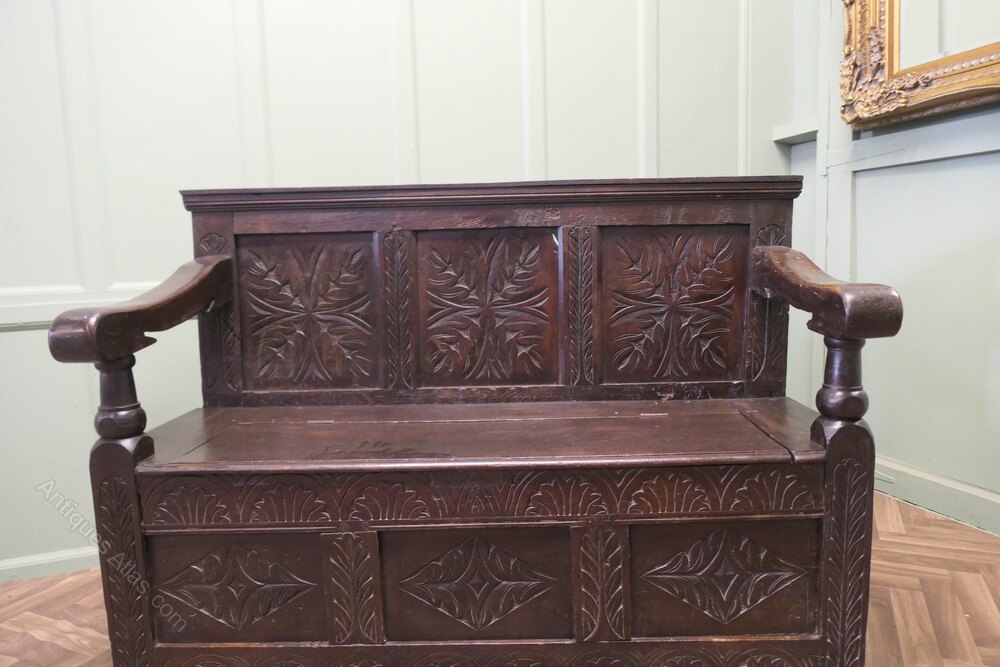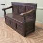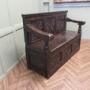 The Settle has 3 carved back panels and further panels at the bottom the seat opens for storage