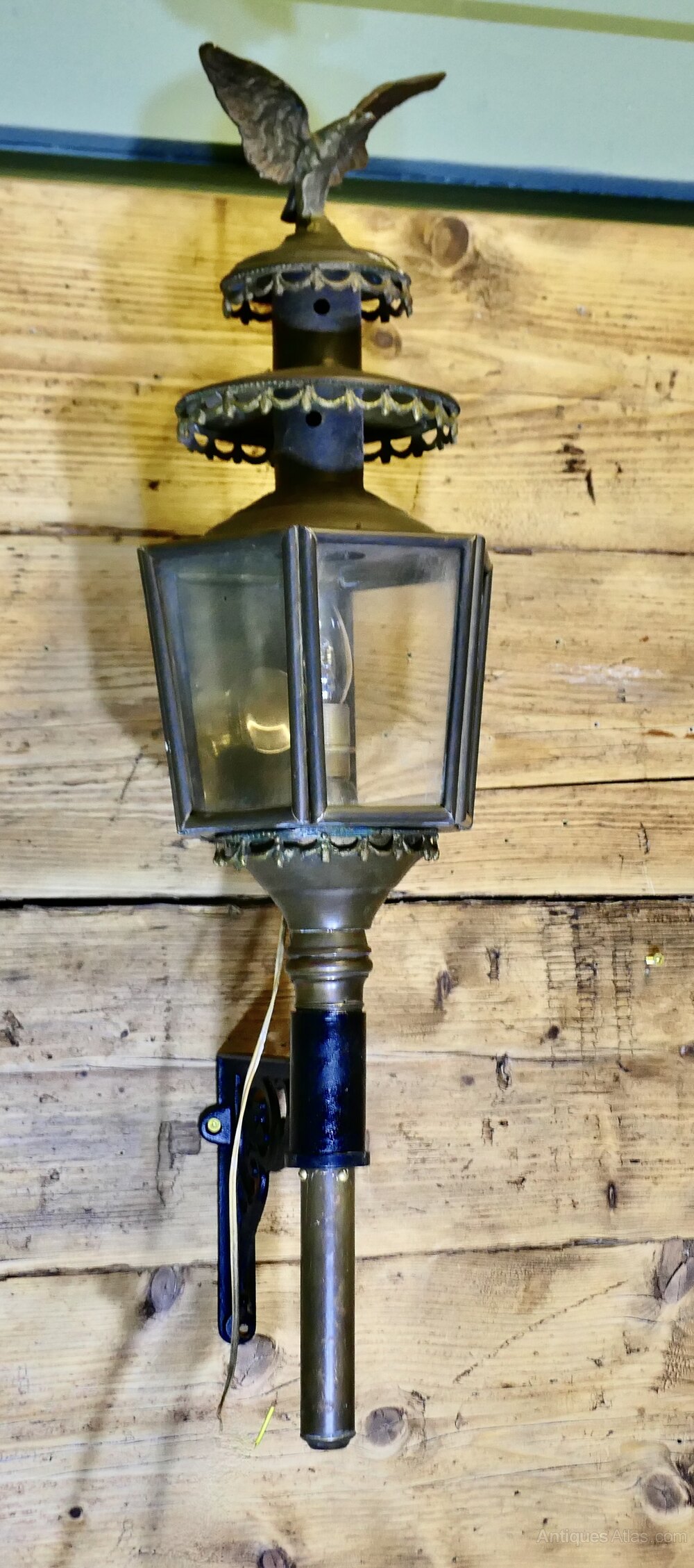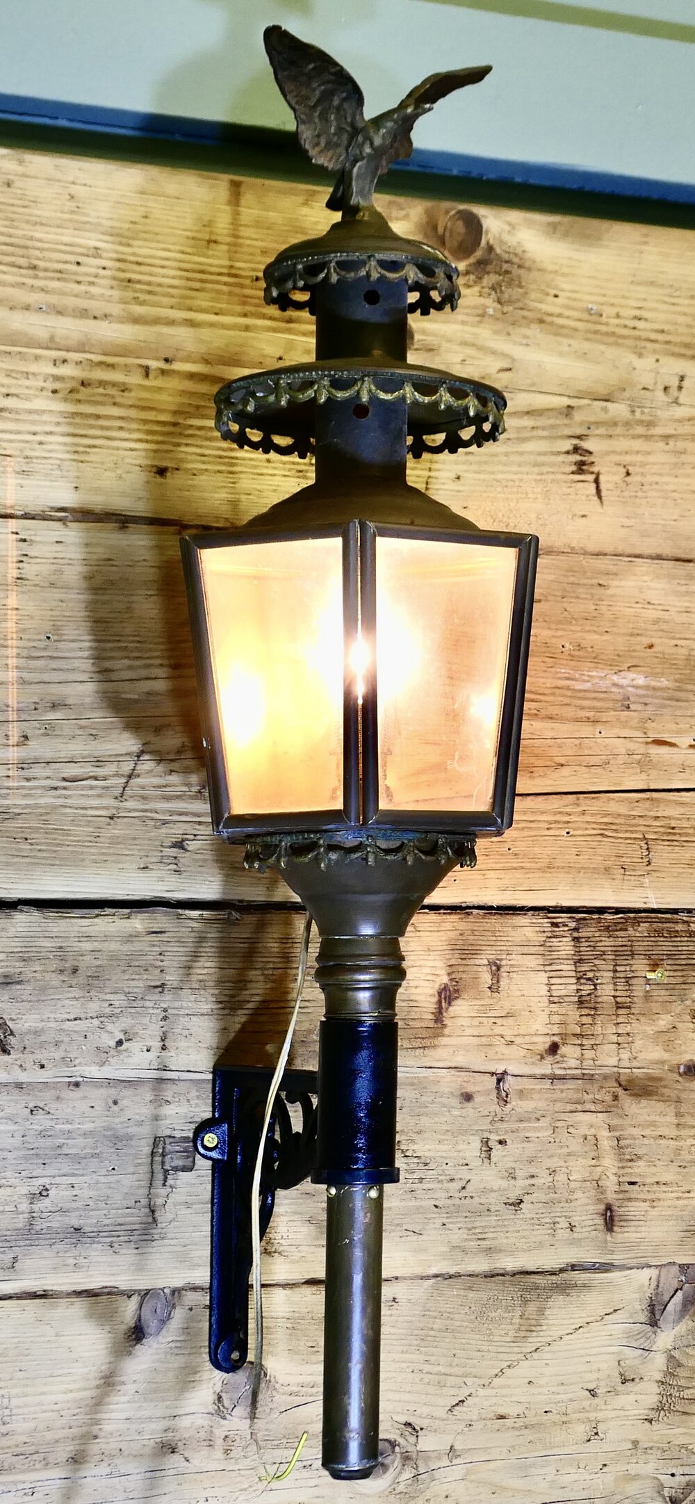 A Large Brass Carriage Light with Eagle, Wall ligh