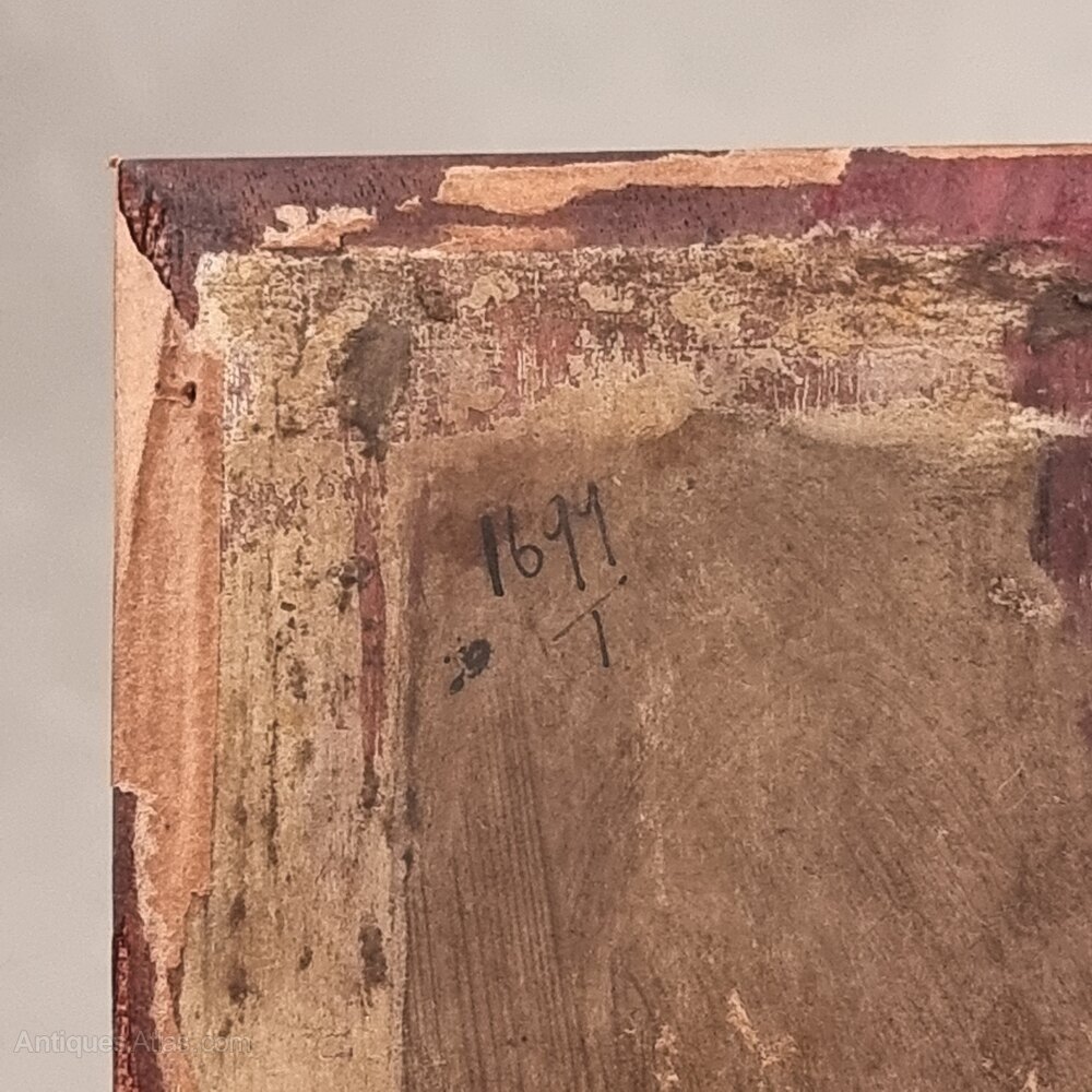 The picture is unframed and in excellent condition and is painted on a walnut panel with a date 1699 T.
