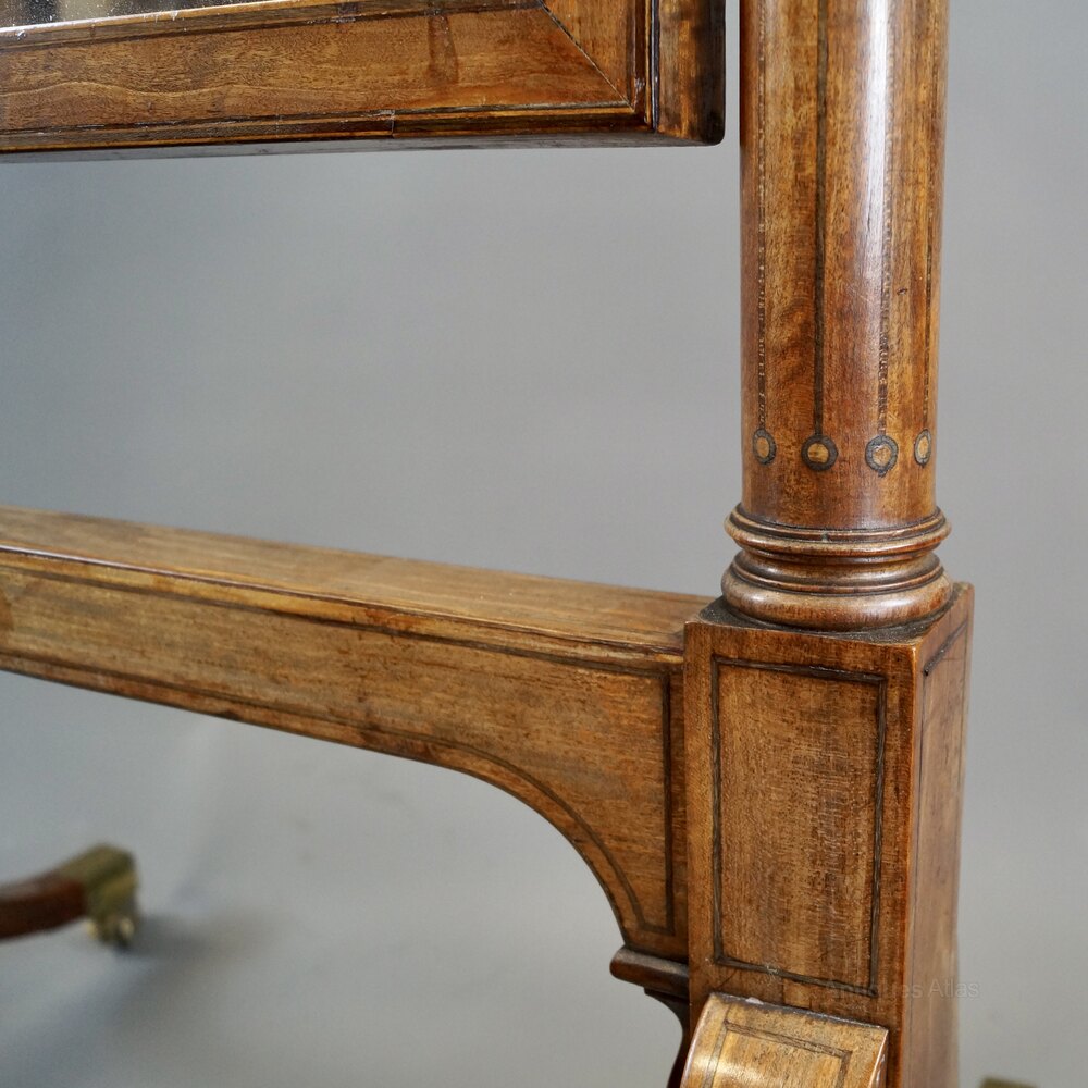 19thC Rosewood and Marquetry Inlaid Cheval Mirror