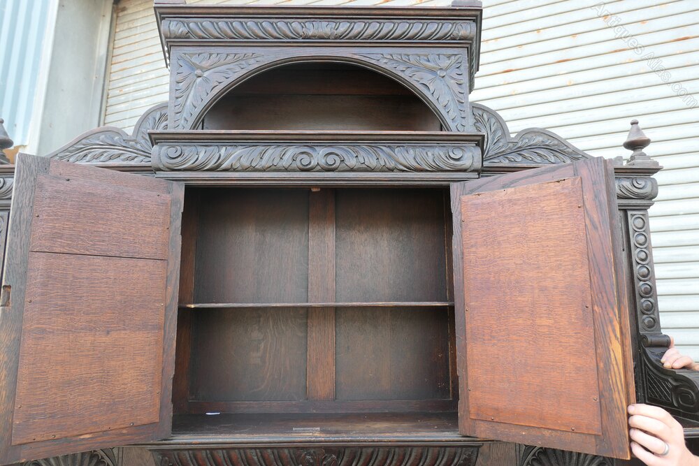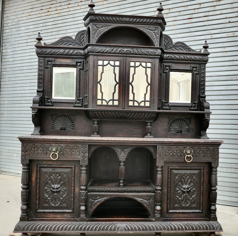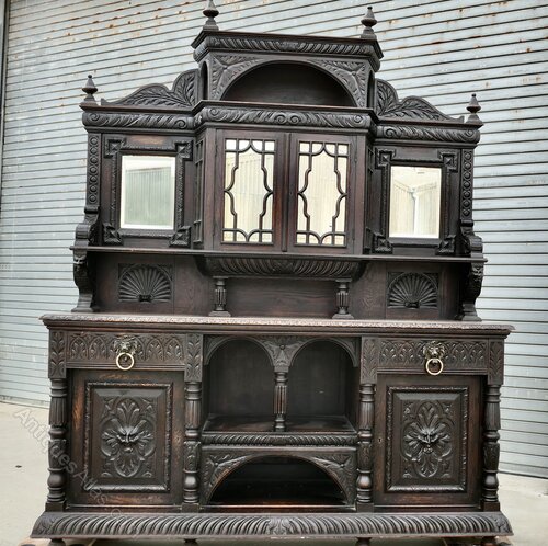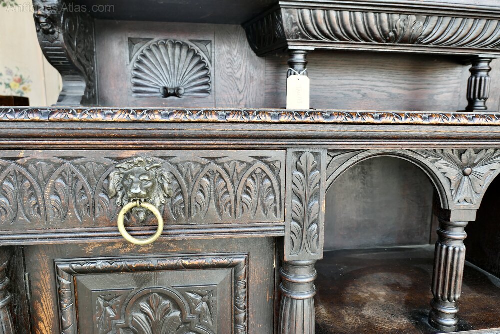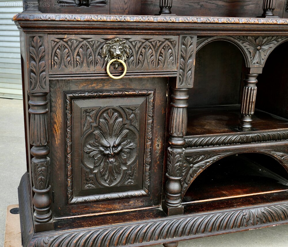This superbly Gothic piece is decorated in a country house style, as there are many patterns to the carvings including faces of lions and the Green Man