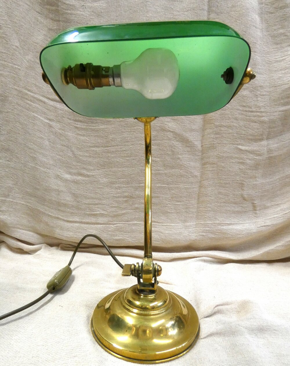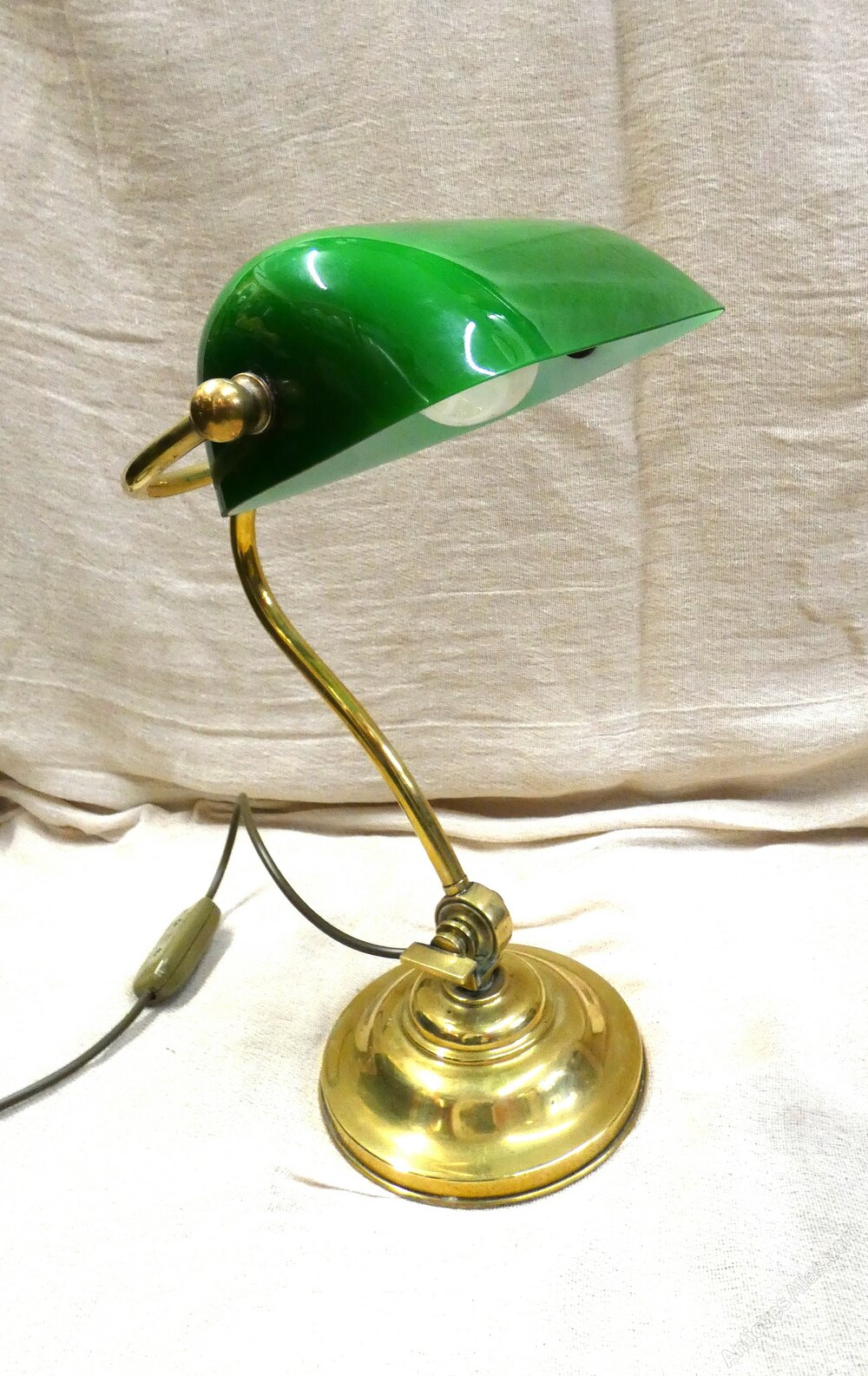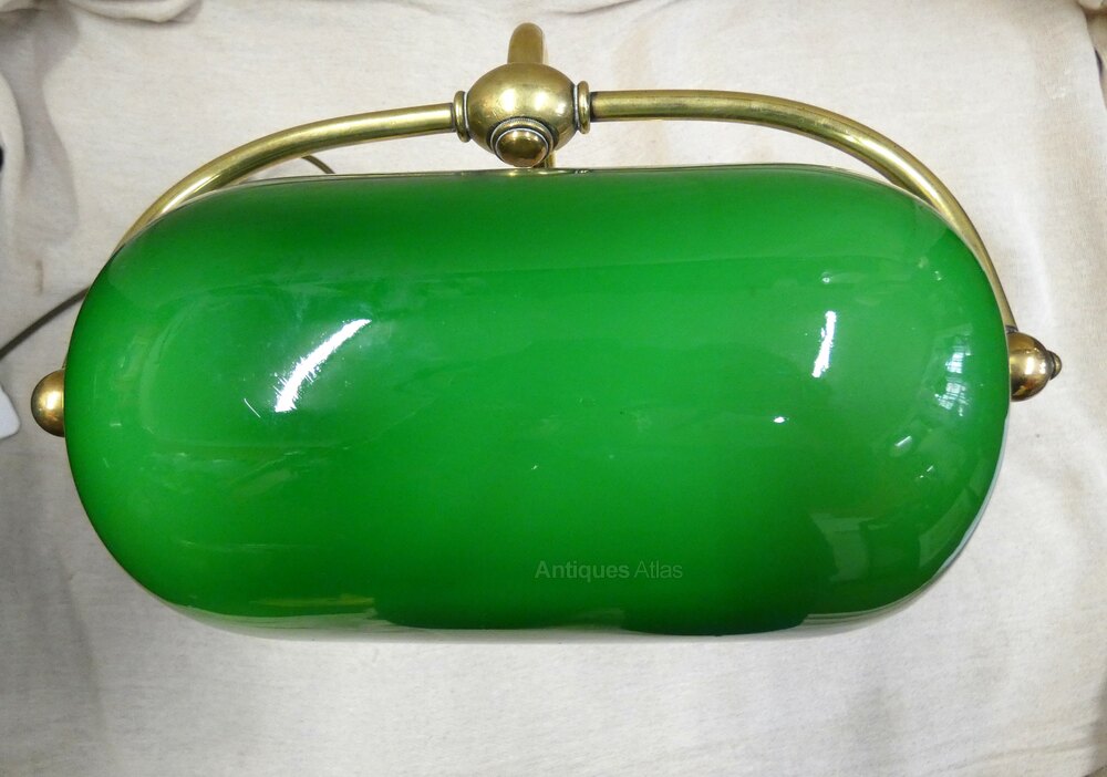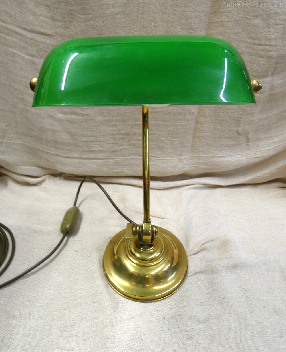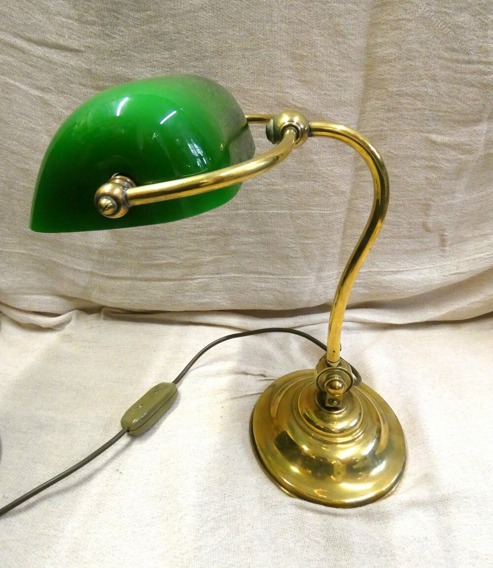 Lovely quality adjustable brass desk lamp / bankers lamp, fully adjustable with green glass shade which is also adjustable.