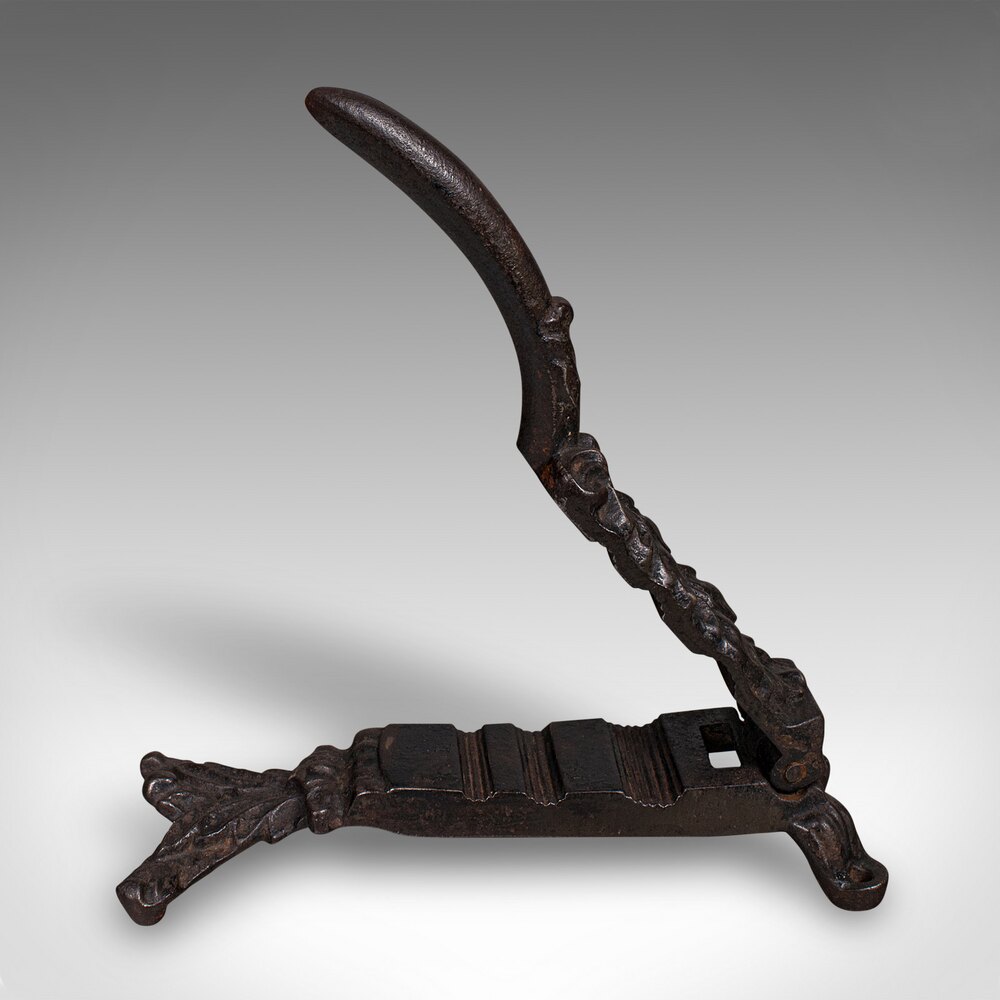 This is an antique apothecary cork compressor. An English, cast iron pharmaceutical press dating to the early Victorian period, circa 1850. A fascinating piece of medical and industrial history, equally suited for collectors or creative repurposing.