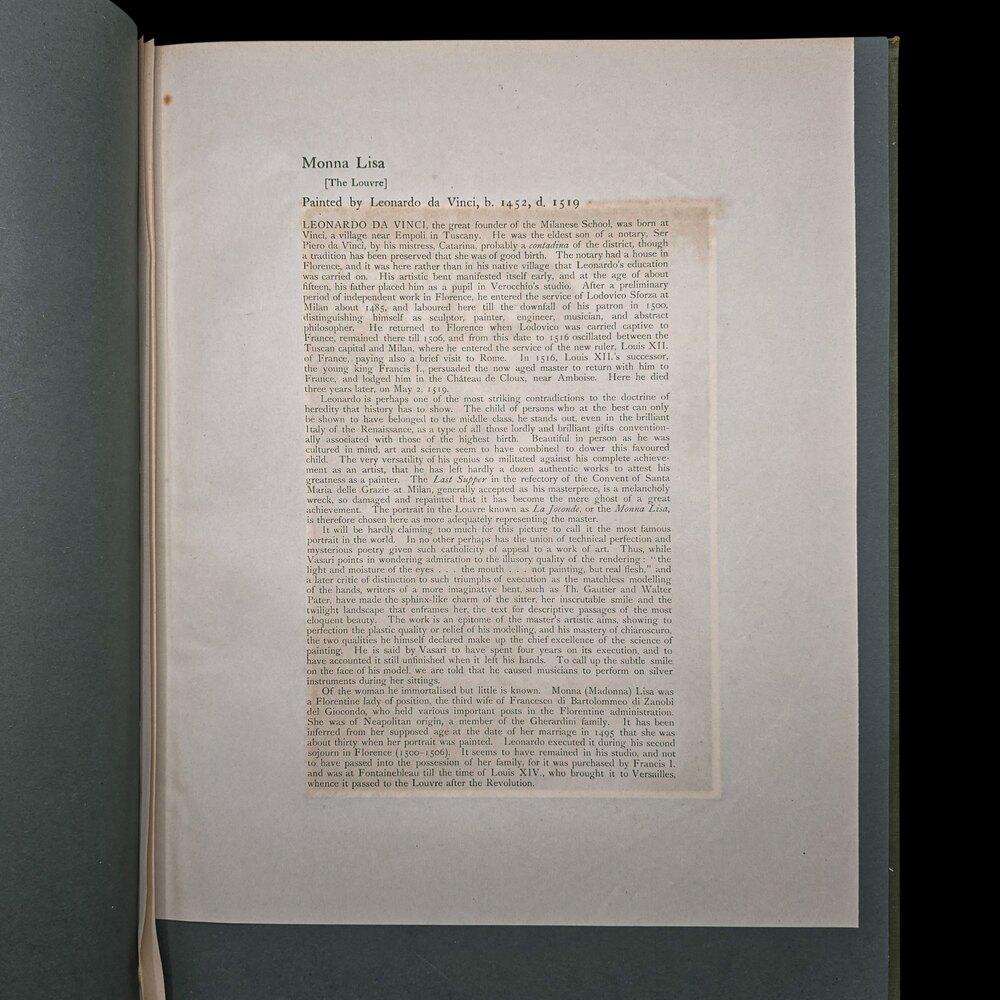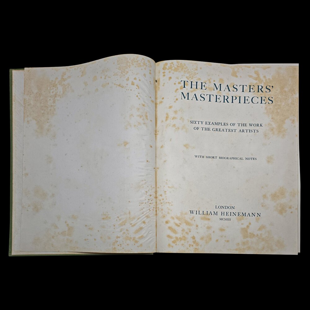 This is an antique copy of The Masters' Masterpieces, a superb Edwardian art reference book published in 1903. Beautifully compiled with 60 high-quality reproductions of major paintings, this volume also features short biographical notes on each artist, offering both aesthetic enjoyment and educational insight. Presented in original, intact order with light age markings, this highly collectible book includes world-famous works such as Leonardo da Vinci’s Mona Lisa, alongside masterpieces by other celebrated painters.