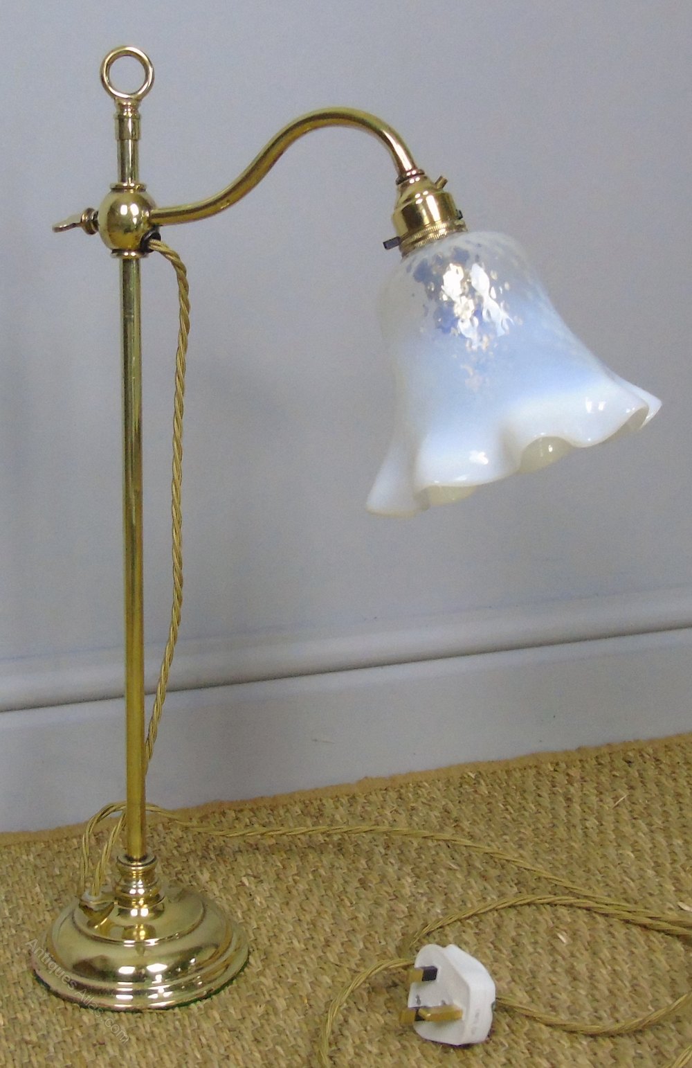 Antique Brass and Glass Table / Desk Lamp