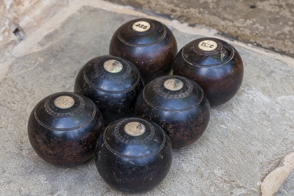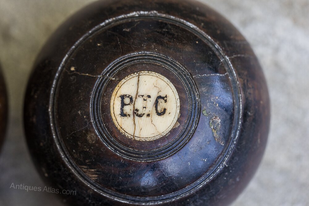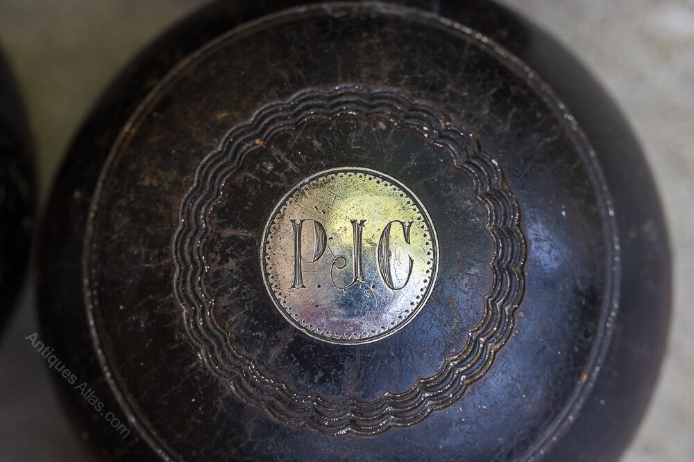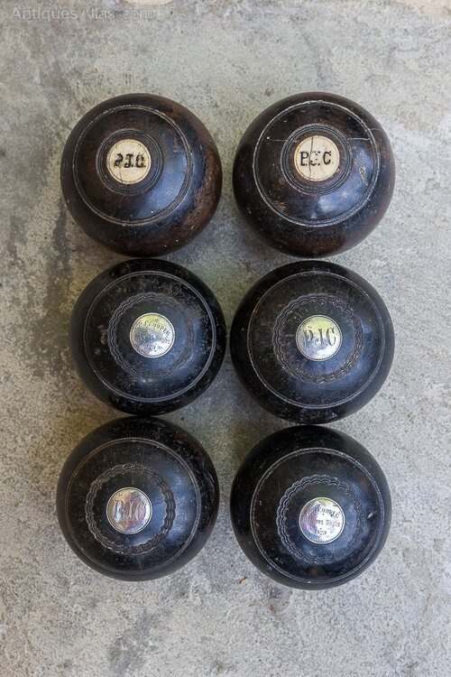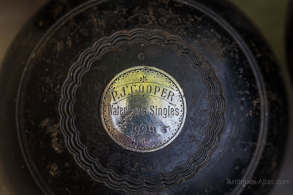 A set of 6 Bowling Balls dated 1929 and inscribed with silver plaques “P J Cooper”