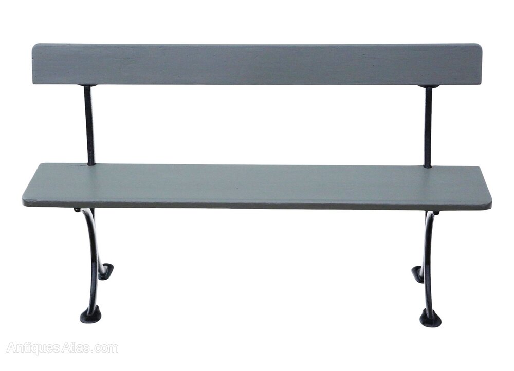 Antique c.1900 Painted Pitch Pine & Iron Bench