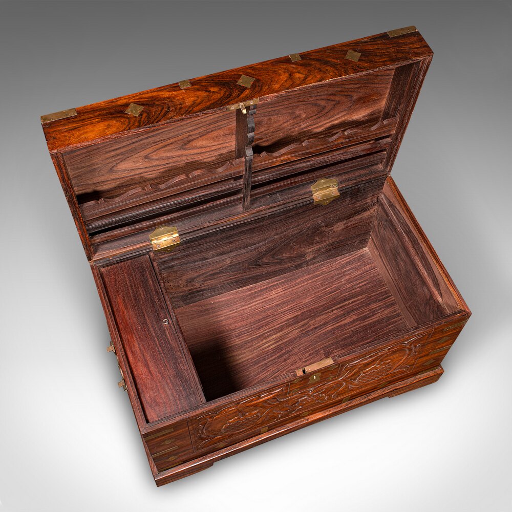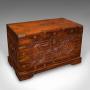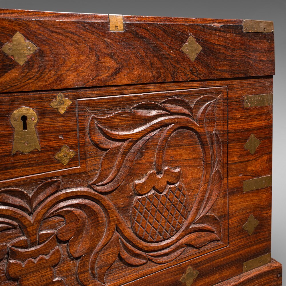 A highly appealing example of late Victorian Anglo-Indian craftsmanship, this antique teak celebration chest would make a distinctive coffee table or storage trunk, ideal for the refined home. Solid joints and construction, delivered ready for the home.