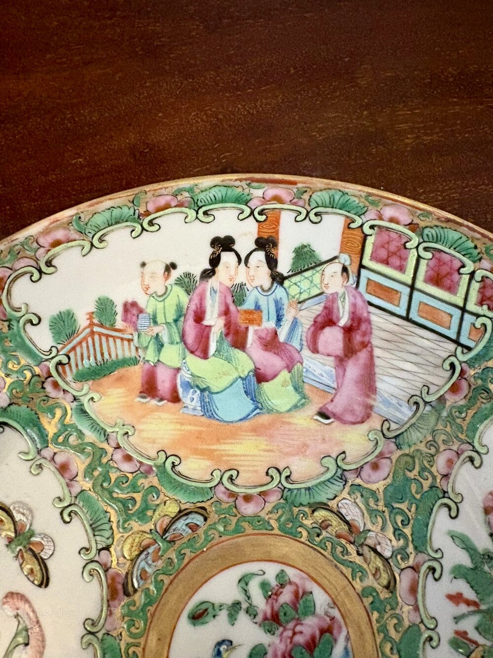 The enamels remain vibrant with good detail throughout, and the central medallion is particularly well executed. A lovely decorative plate and an excellent example of 19th-century Chinese export artistry. In lovely condition with no repairs, chips or cracks.