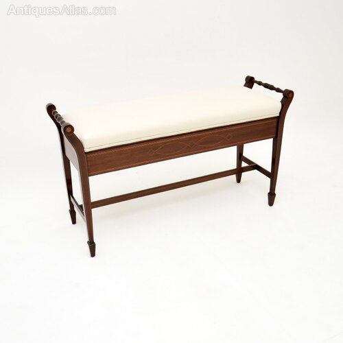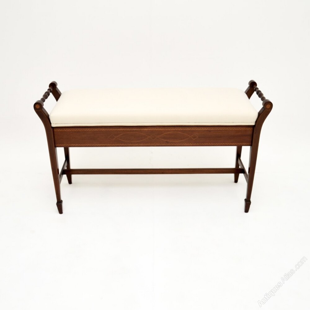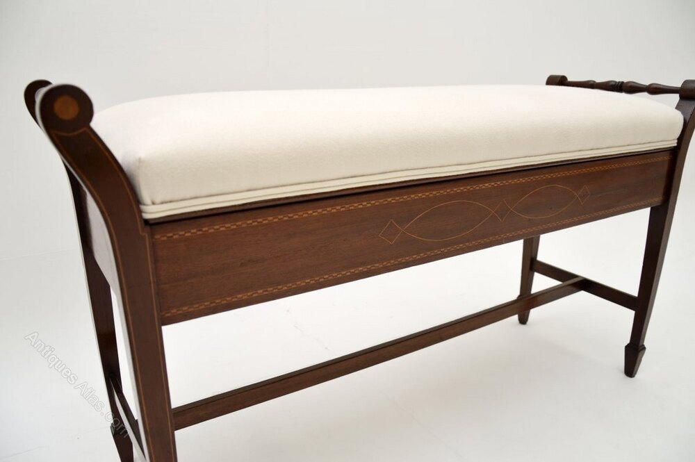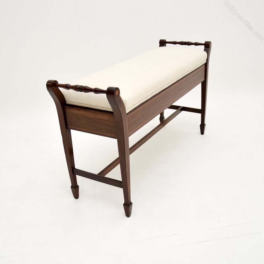 Antique Edwardian Inlaid Mahogany Piano Duet Stool