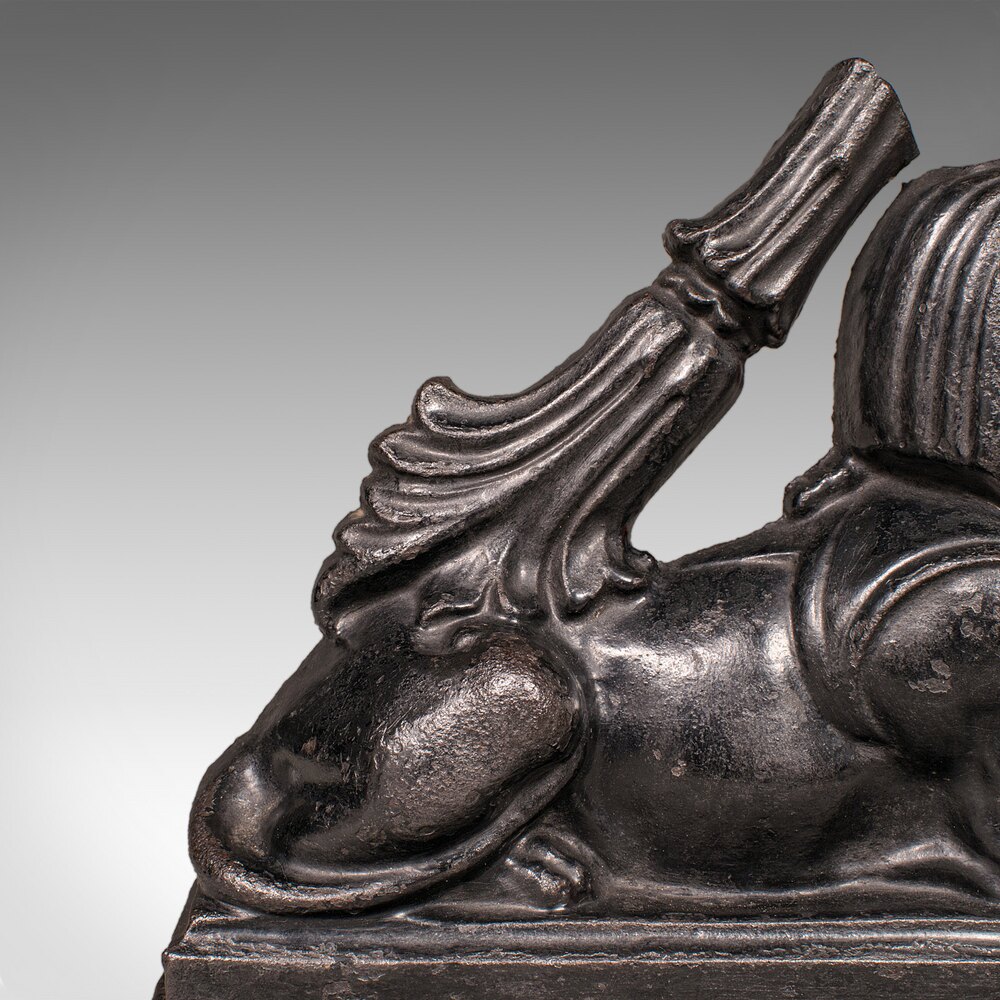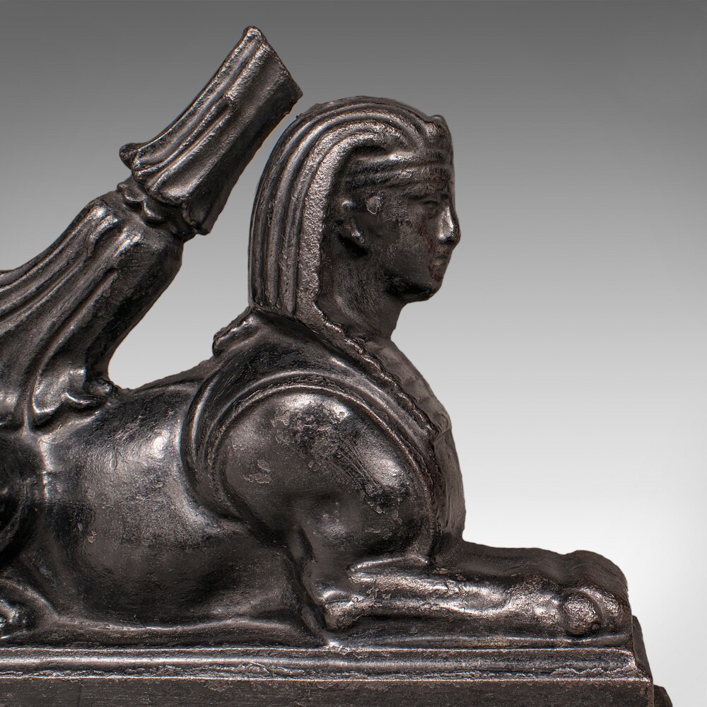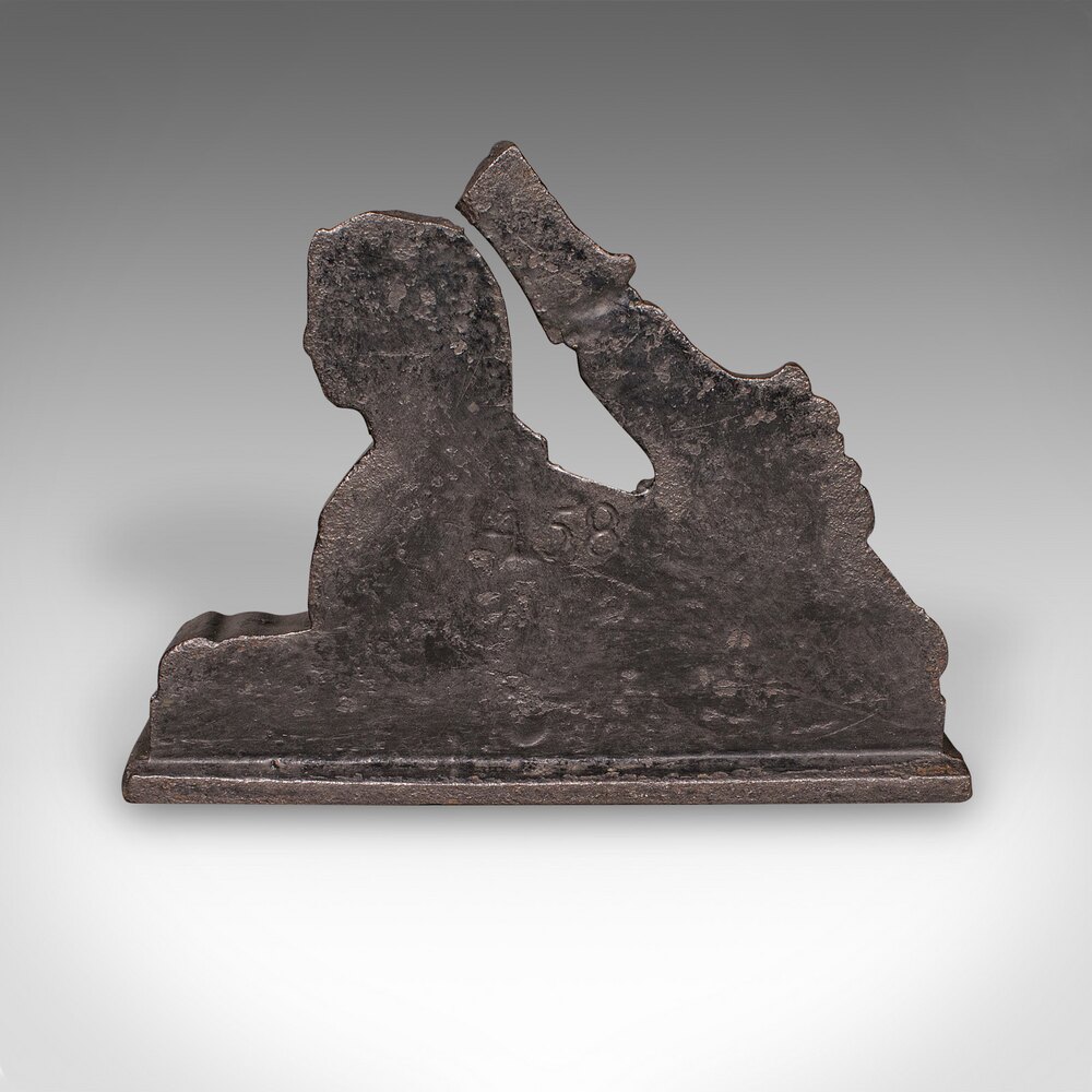 This is an antique Egyptian revival doorstop. An English, cast iron door keeper in Sphinx form, dating to the late Regency period, circa 1830. A wonderfully evocative piece of early 19th century interior decor, celebrating Britain’s fascination with Egyptian revival design.