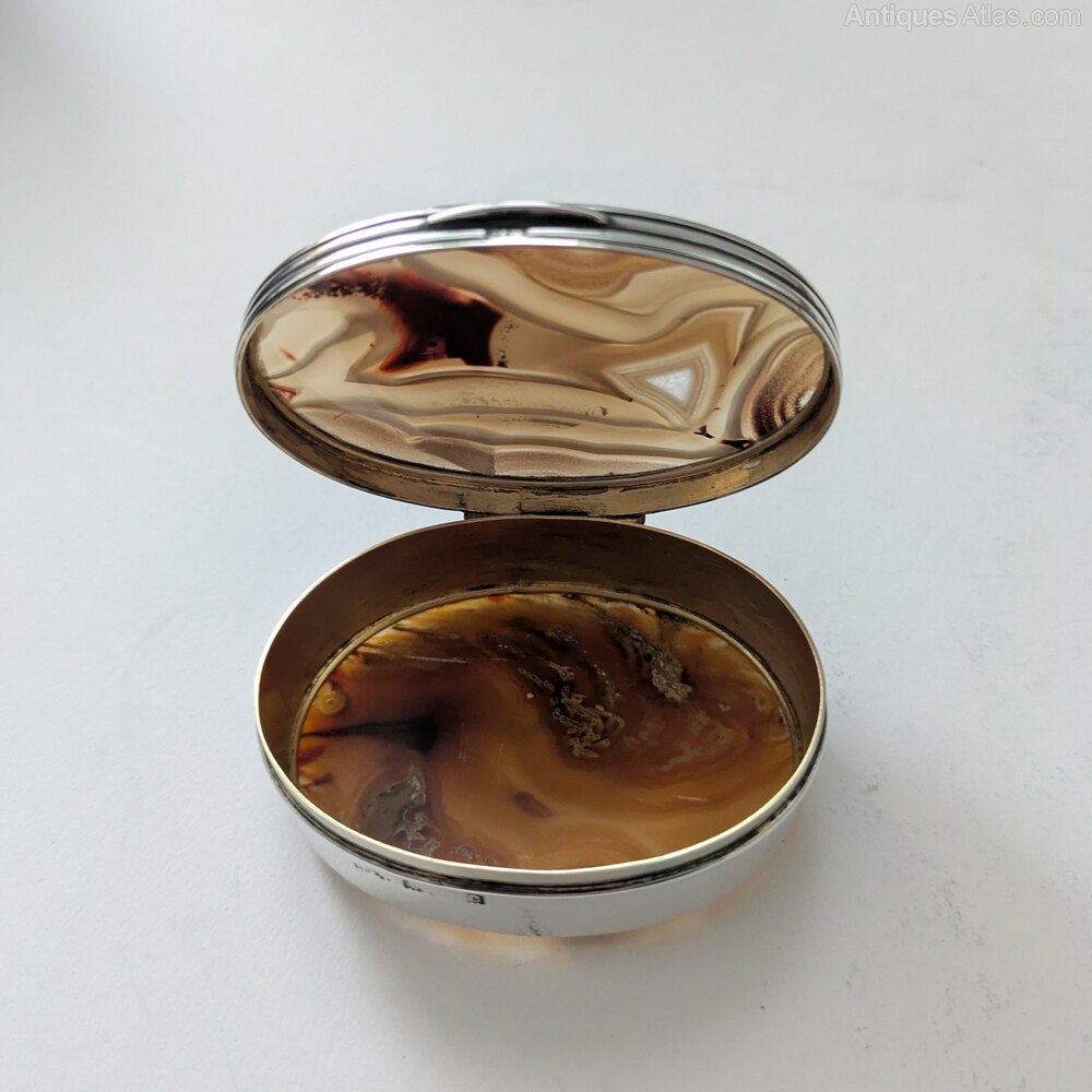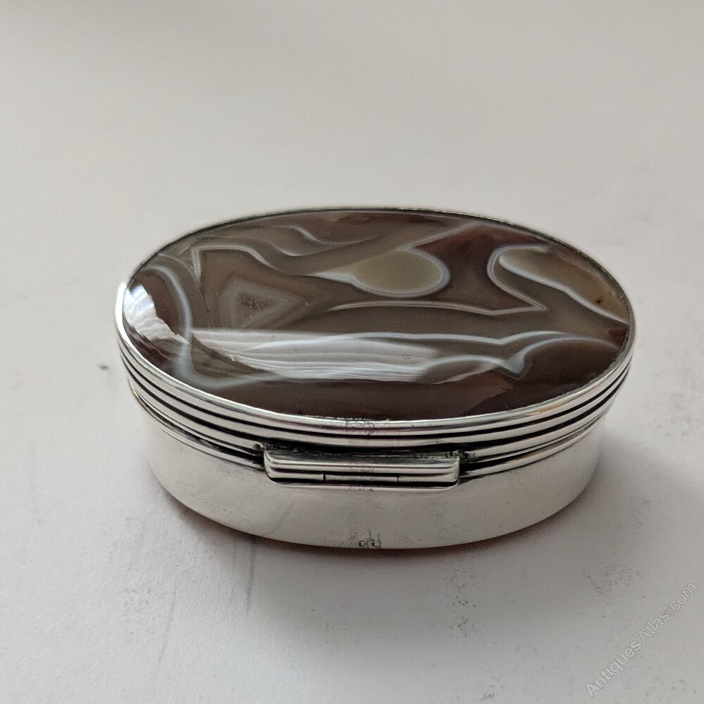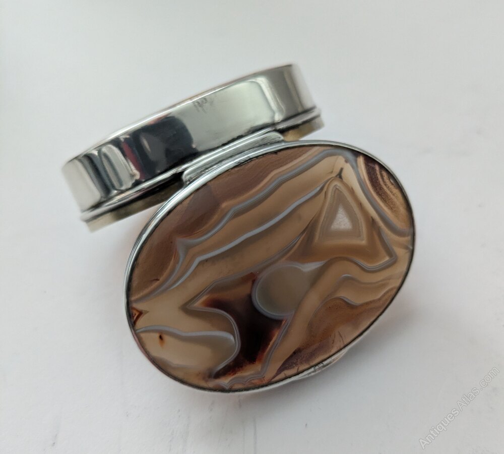 Antique English Silver & Agate Snuff Box - 1902