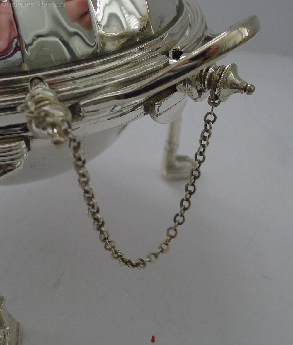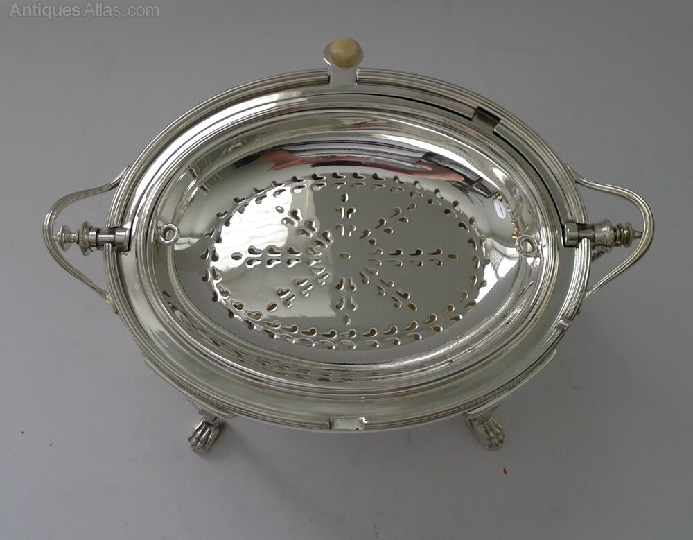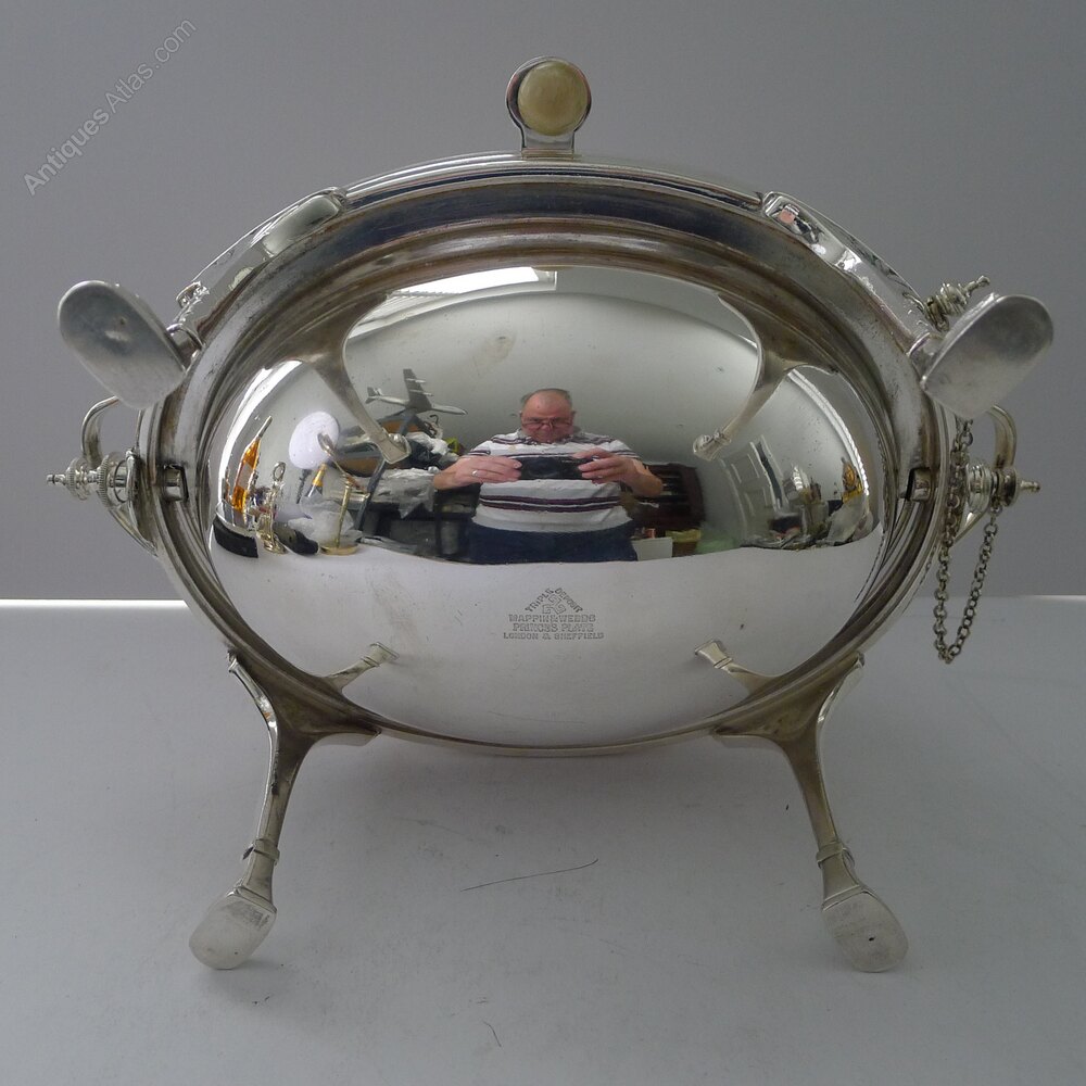 A quality late Victorian / early Edwardian example in superb condition dating to c.1900. 11" handle to handle x 7 1/4" (plus knob) x 8" tall to top of dome.
