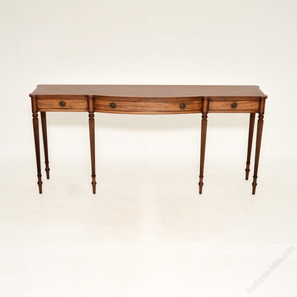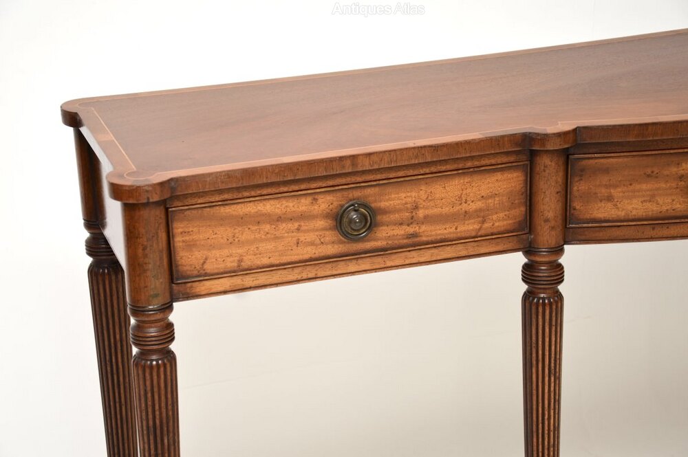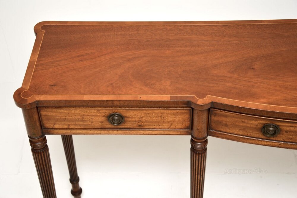 A very impressive and very wide antique Georgian style inlaid mahogany console table, made in England and dating from around the 1930’s.