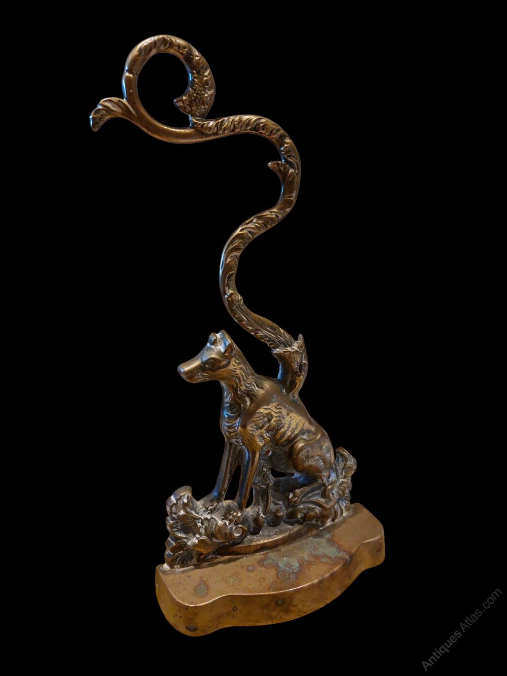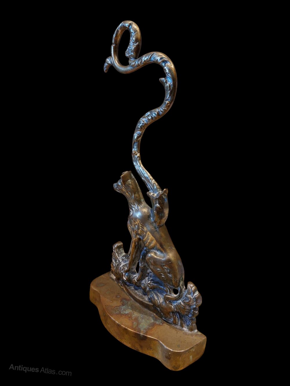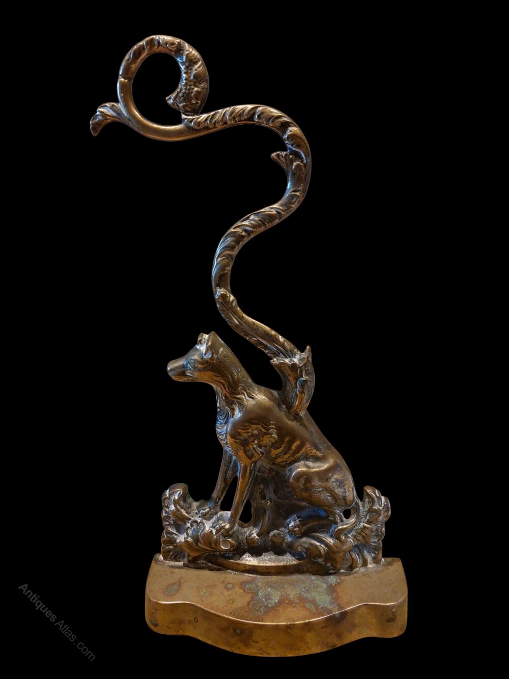 A very good English Victorian cast brass doorstop of a Handsome Hound. Superbly cast with the original unpolished finish and patina. Retaining the original lead and plaster weight in the back. Circa 1880. Can be polished if required at extra charge. 13 3/4" tall x 6 5/8" wide x 2 3/8" deep.