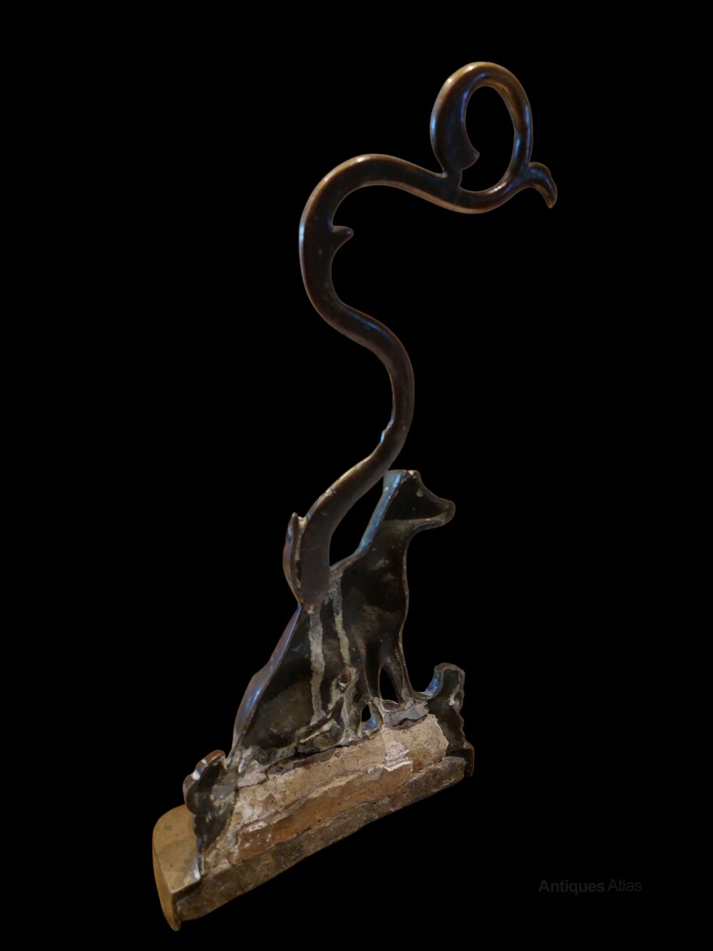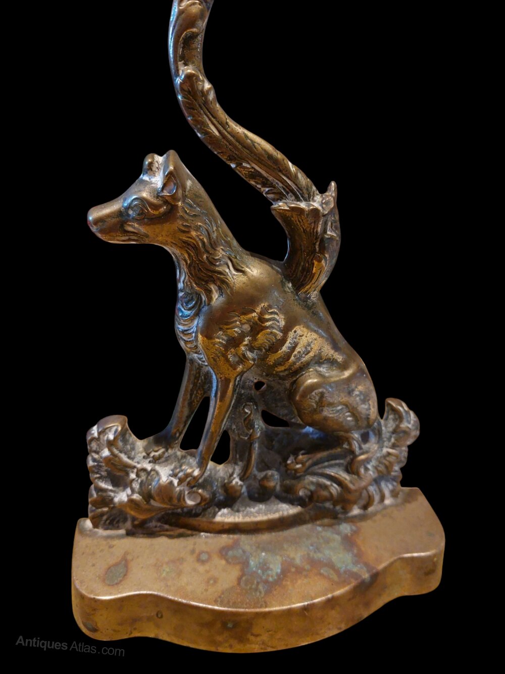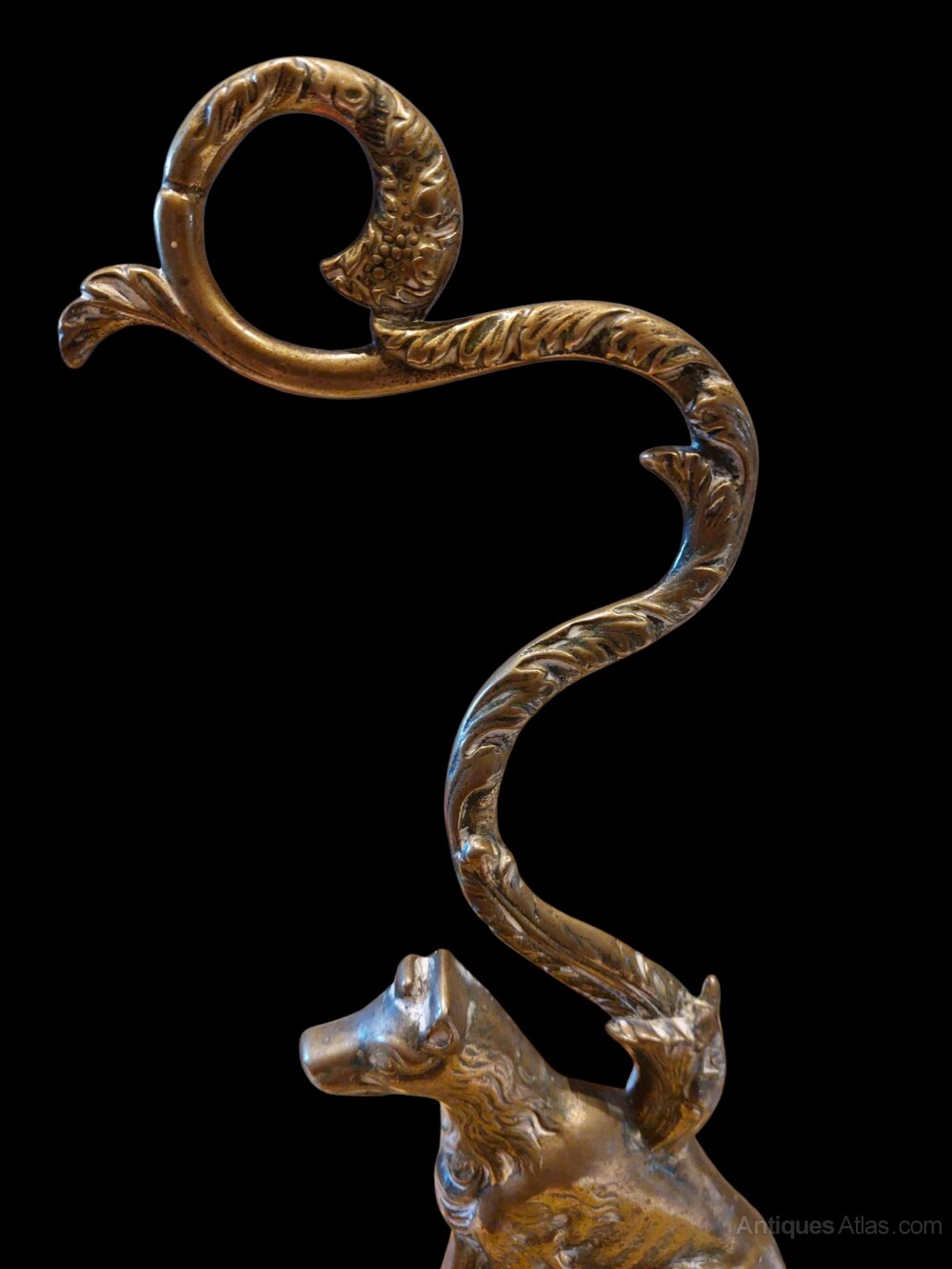 A very good English Victorian cast brass doorstop of a Handsome Hound. Superbly cast with the original unpolished finish and patina. Retaining the original lead and plaster weight in the back. Circa 1880. Can be polished if required at extra charge. 13 3/4" tall x 6 5/8" wide x 2 3/8" deep.