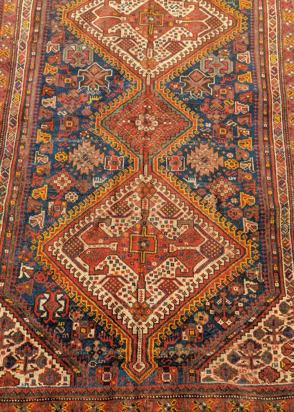 Antique Khamseh Tribal (morghi) Chicken Carpet.