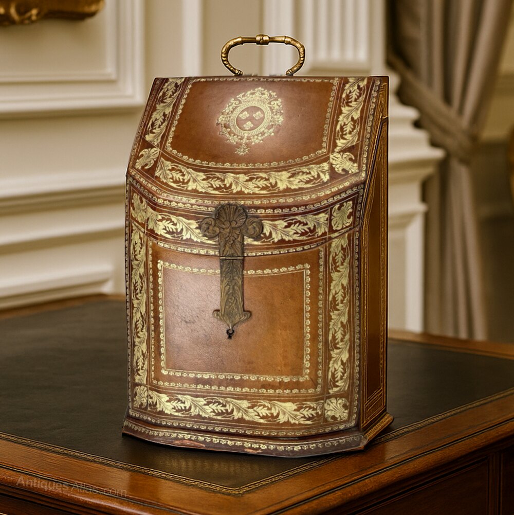 A rare example of Edwardian luxury craftsmanship, this gilt leather stationery box was created by J.C. Vickery of Regent Street, London, renowned gold and silversmith to the elite. Vickery’s work is highly prized for its exquisite detailing and association with royal warrants.