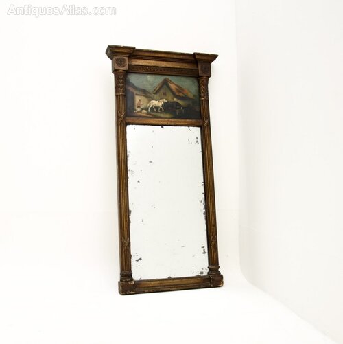 A beautiful and very well made antique Regency painted gilt wood mirror. This was made in England, it dates from around the 1800-1820 period.