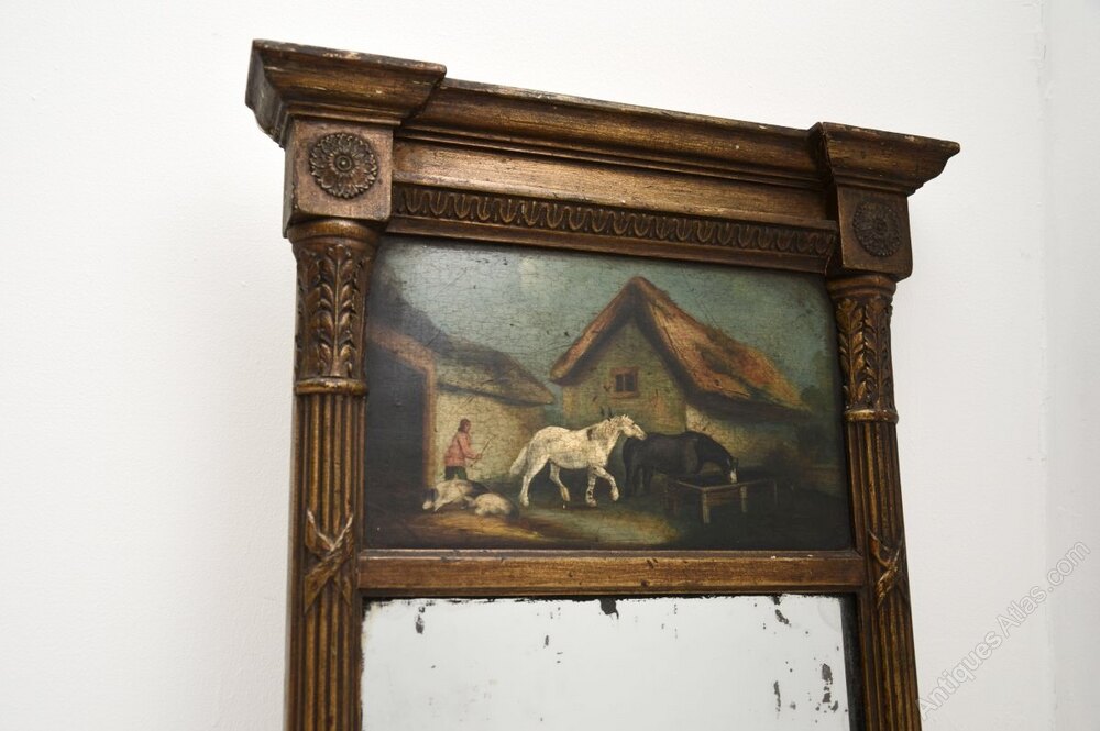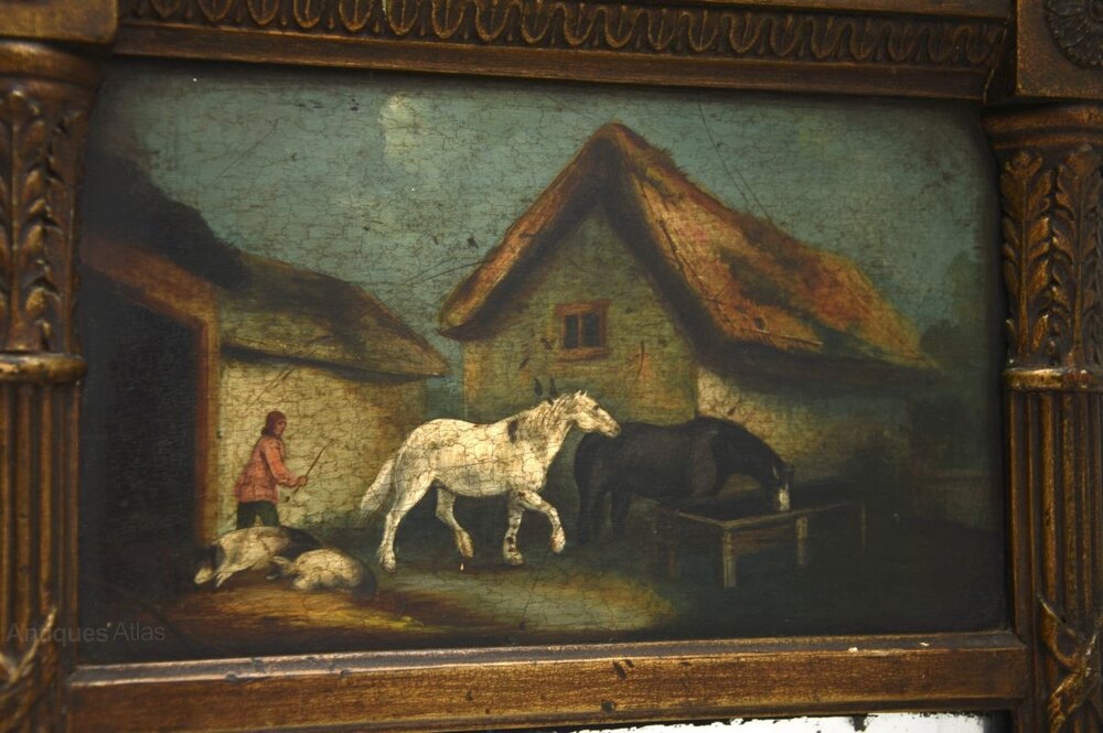 It is of lovely quality and is a very useful size. The gilt wood has a fantastic patina, there are lovely details and the upper panel is hand painted with a wonderful farm scene.