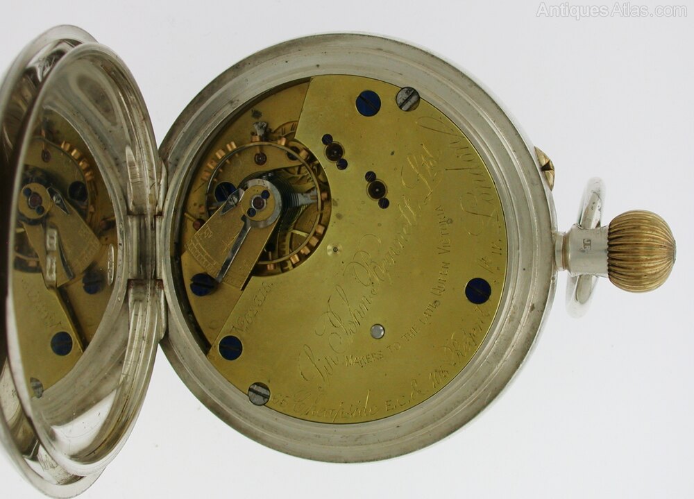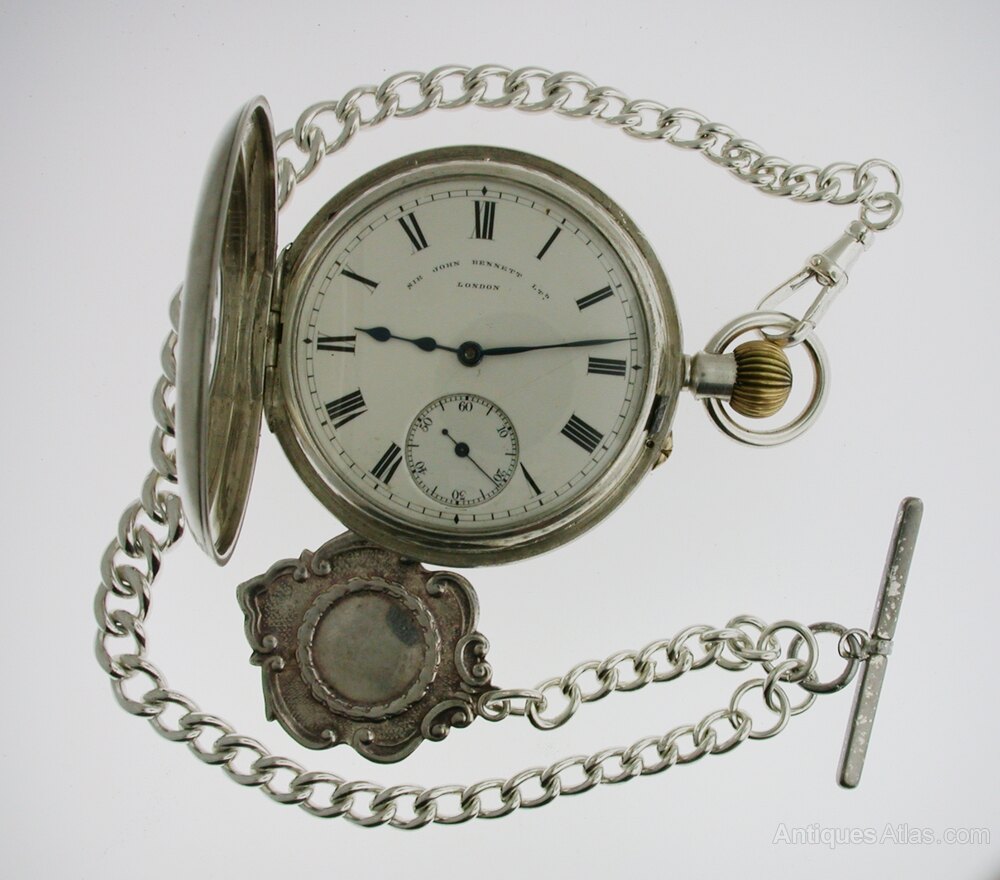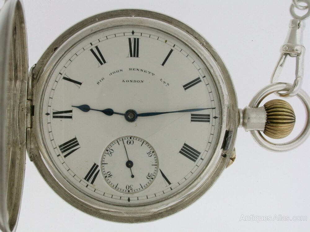 A silver Sir John BENNETT Half Hunter pocket watch, hallmarked for London 1911. This pocket watch is made by the famous maker Sir John Bennett (See history underneath). The watch comes with a chain and in an antique watch box.