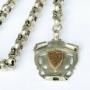 Also included is a handsome silver fob with rose gold overlay to the shield, and initials. The fob is hallmarked for Birmingham 1897 with a maker’s mark for the Birmingham silversmith Charles Soloman. The fob measures 29mm wide and 29mm high excluding the fixed loop.
