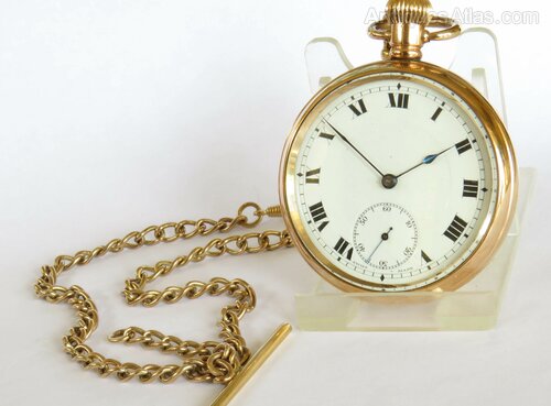 The watch measures 50mm diameter excluding the winding stem and the loop. The case is the gold plated Star model from the Dennison Watch Case Company. Dennisons was a Birmingham based manufacturer and supplier of cases to various watch makers. The front and sides of the case are in good condition, the screw-on case back has a gentle unevenness.