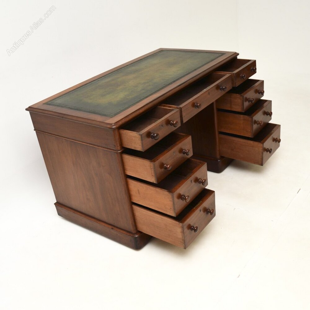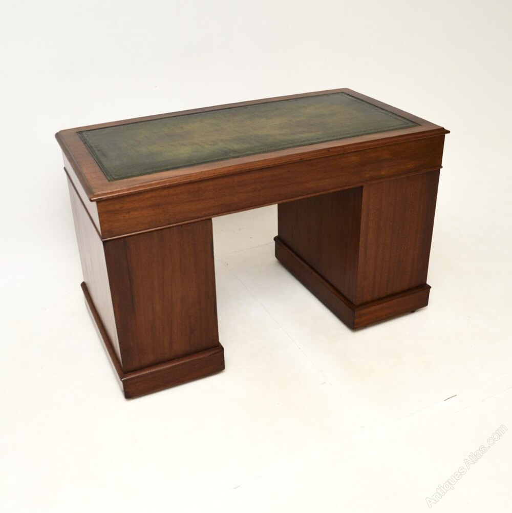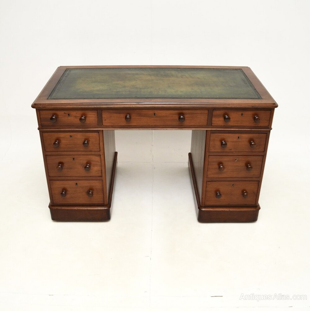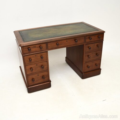 A smart and very useful antique Victorian mahogany leather top pedestal desk. This was made in England, it dates from the 1860-1880 period.