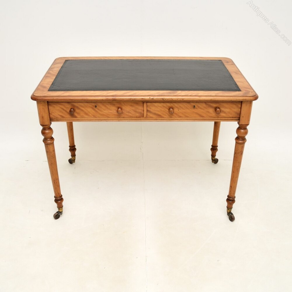 A fantastic antique Victorian satin wood writing table / desk. This was made in England, it dates from around the 1840-1860 period.