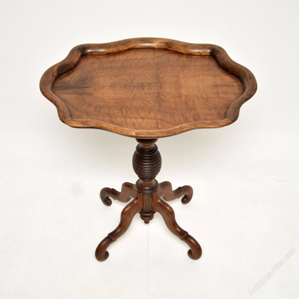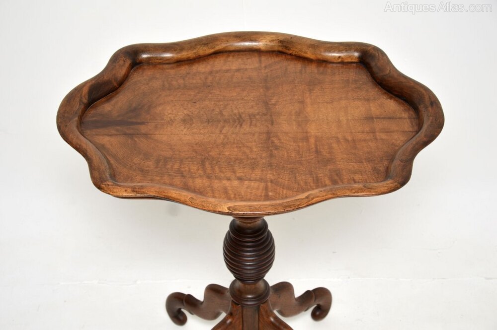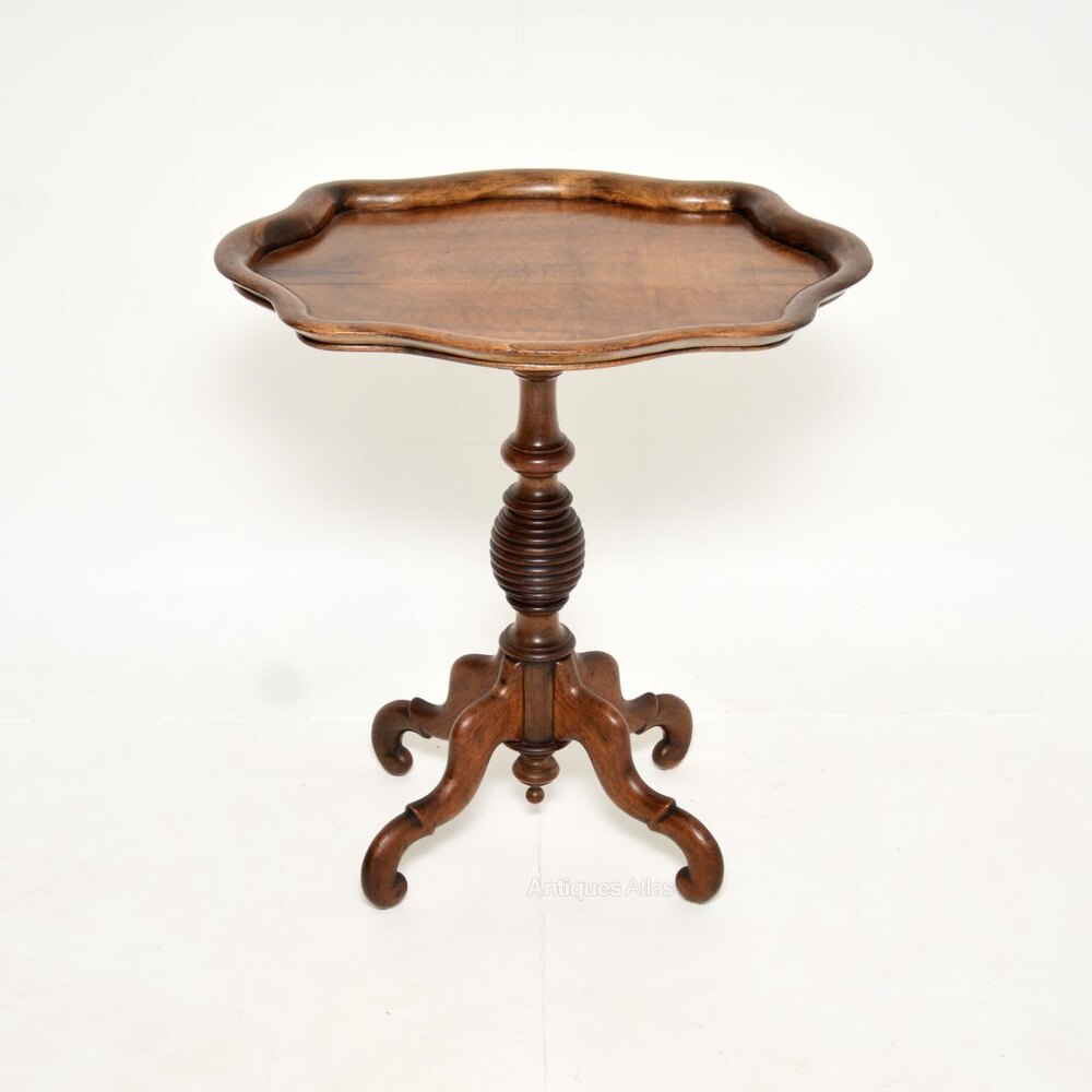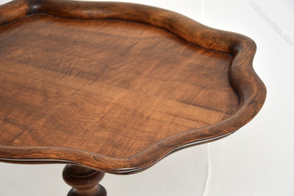 It is of lovely quality, the top is nicely shaped with raised serpentine shaped edges and stands on a beautifully turned base. The walnut has a gorgeous mellow colour tone and nice grain patterns.
