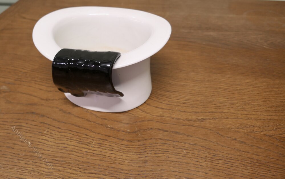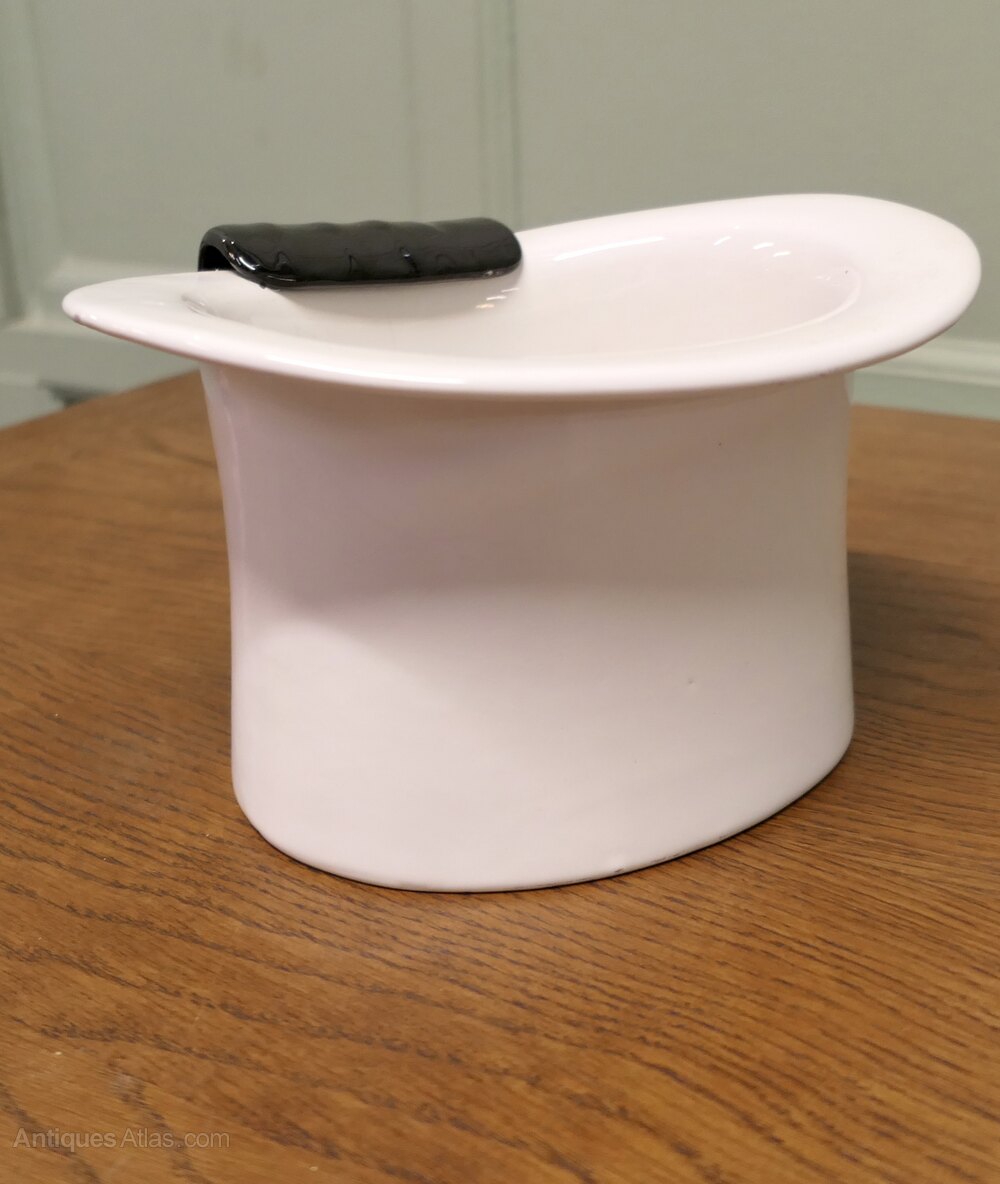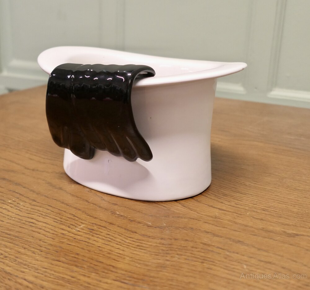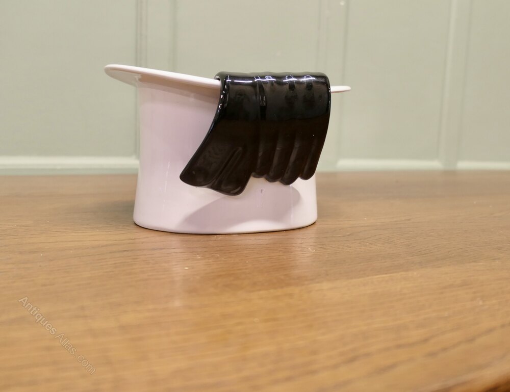 A Very Stylish piece in the form of a white top hat with black gloves hanging on the side
