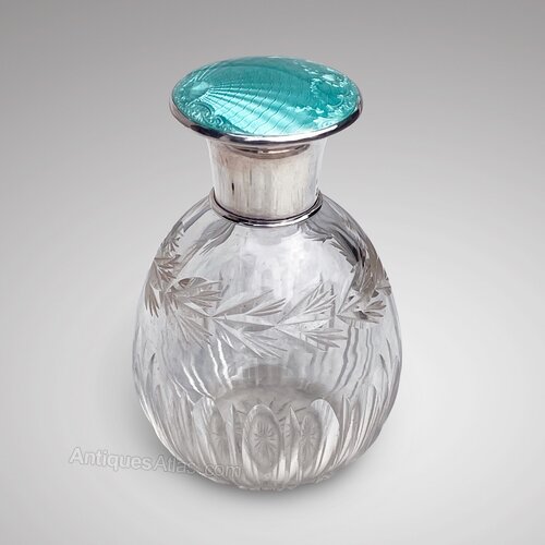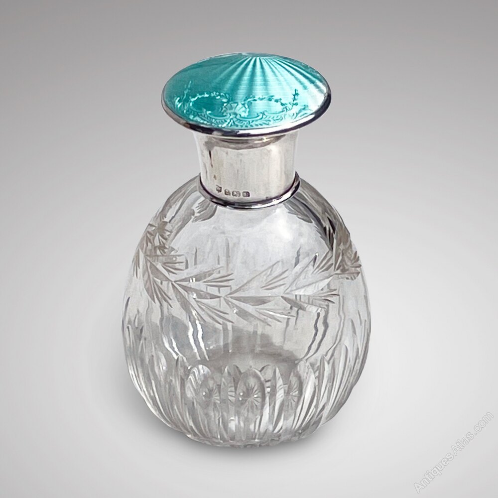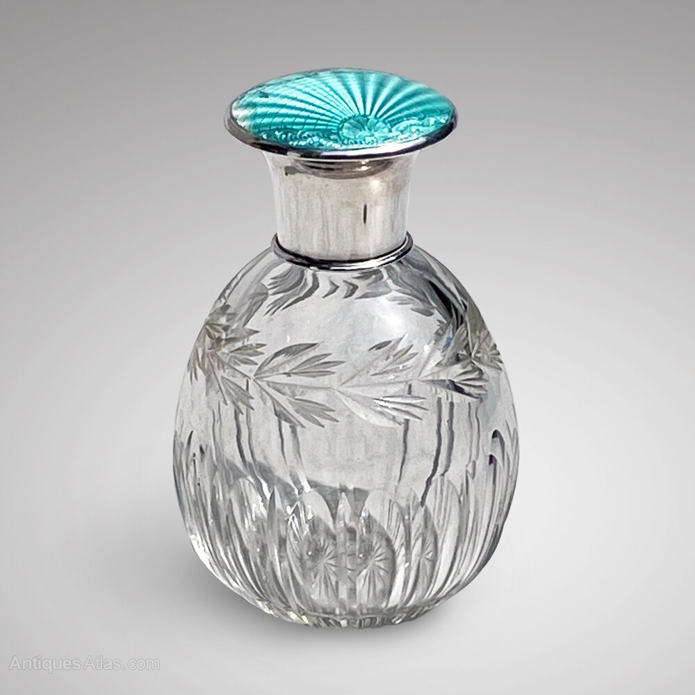 Art Deco Cut Glass & Silver Enamel Perfume Bottle