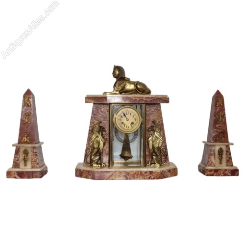 Art Deco Egyptian Revival Clock Set With Obelisks