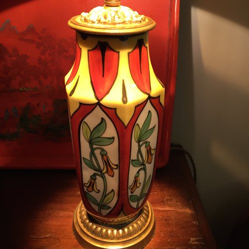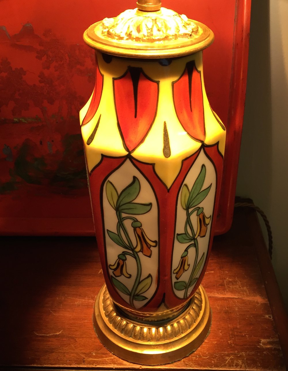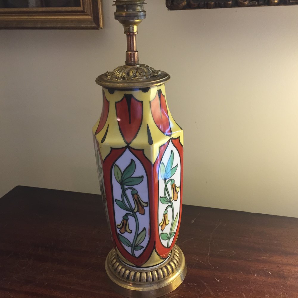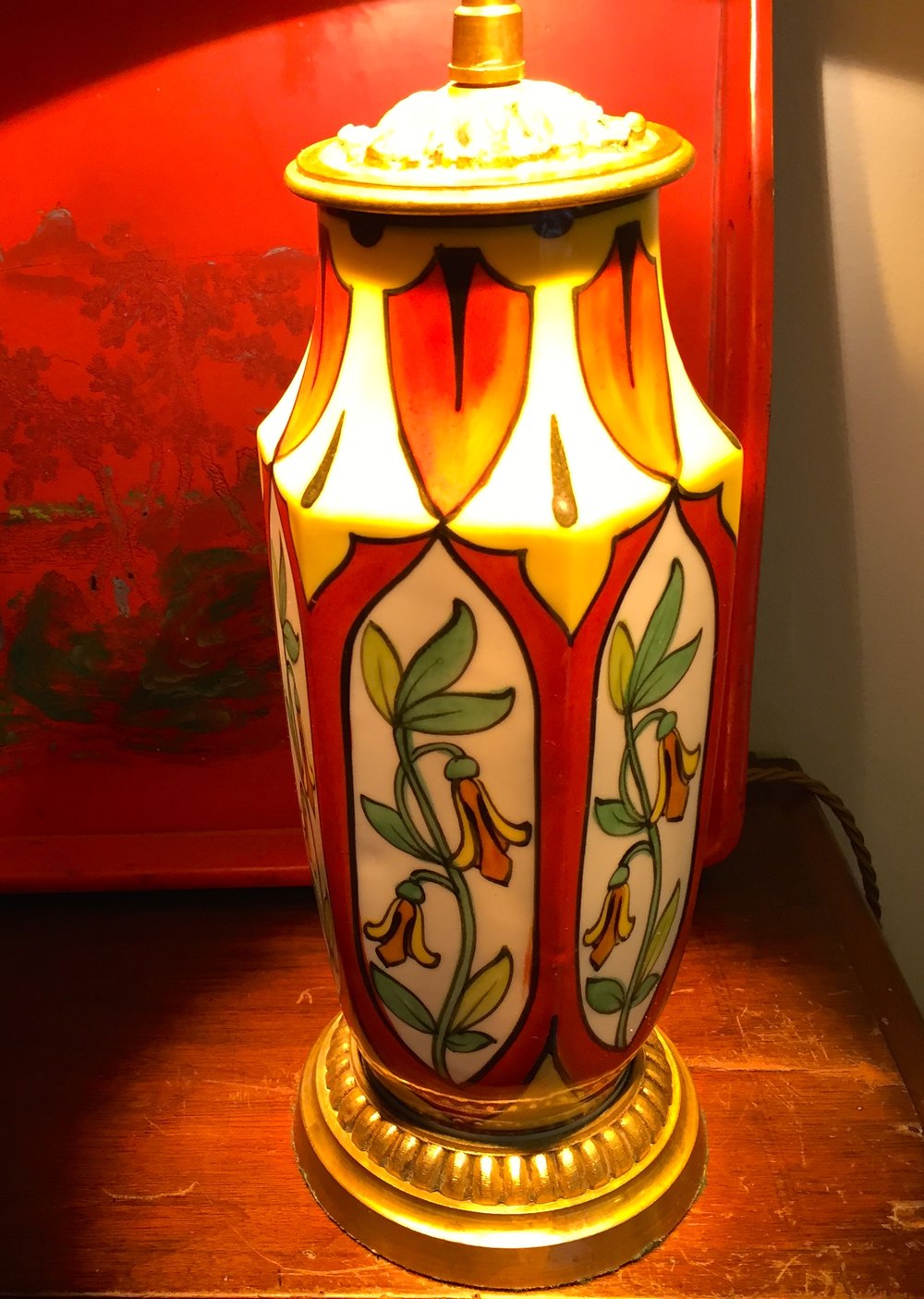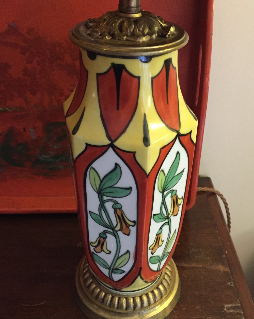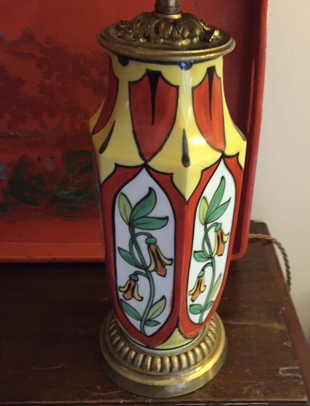 Hand Painted in Vibrant Colours and extremely pleasing Table Lamp dating to the glamorous Art Deco Era.
