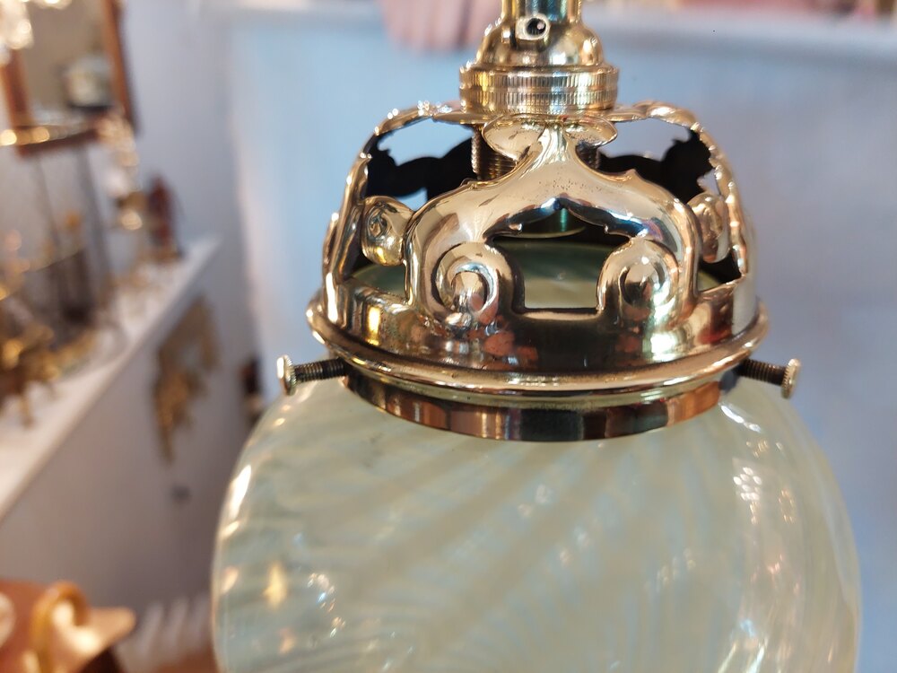 Art Nouveau Ceiling Lamp with Green Glass Bulb