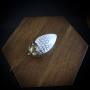 Arts and Crafts pendant with brass foliate fitting and a conical vaseline polka dot shade. Measures 19 cm x 9.5 cm diameter