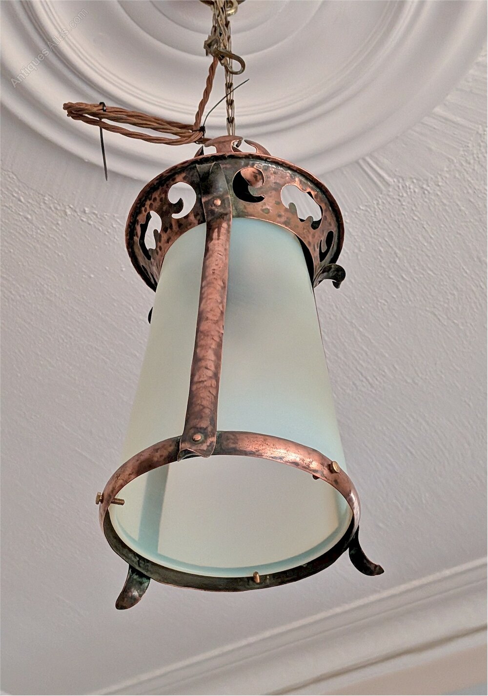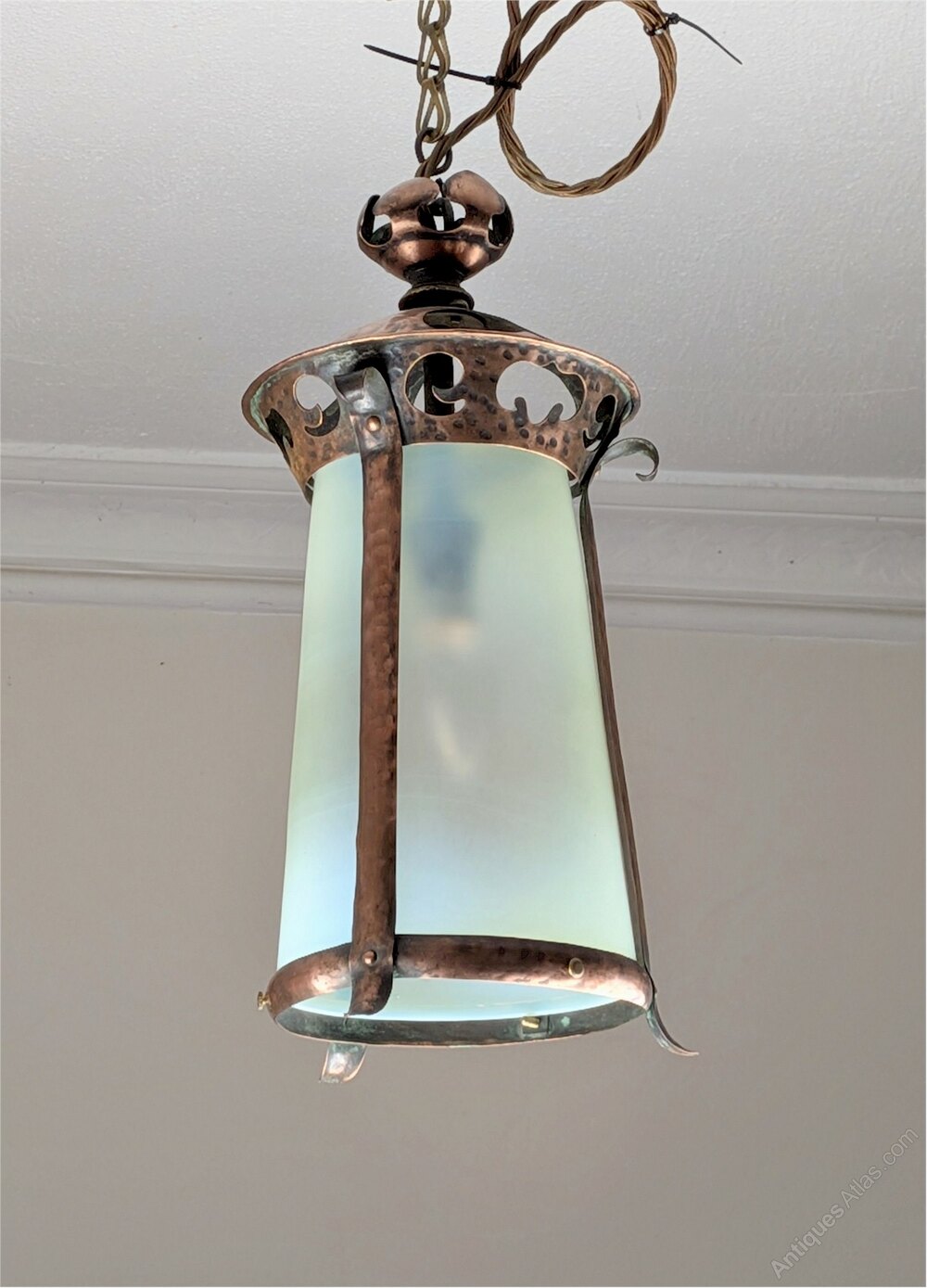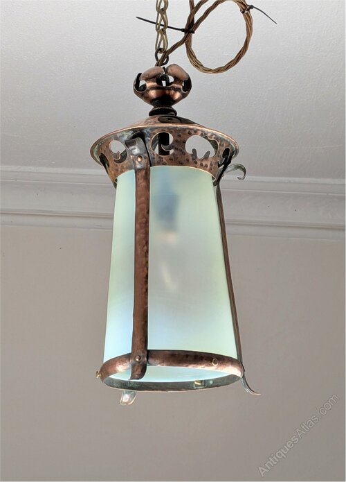 Arts And Crafts Vaseline Lantern Hammered Copper