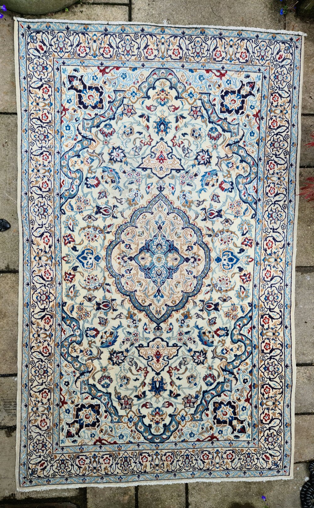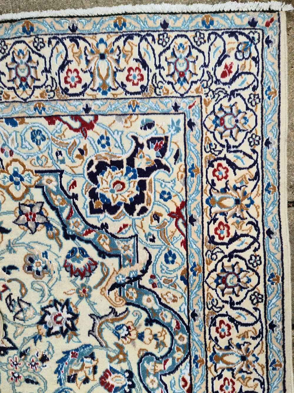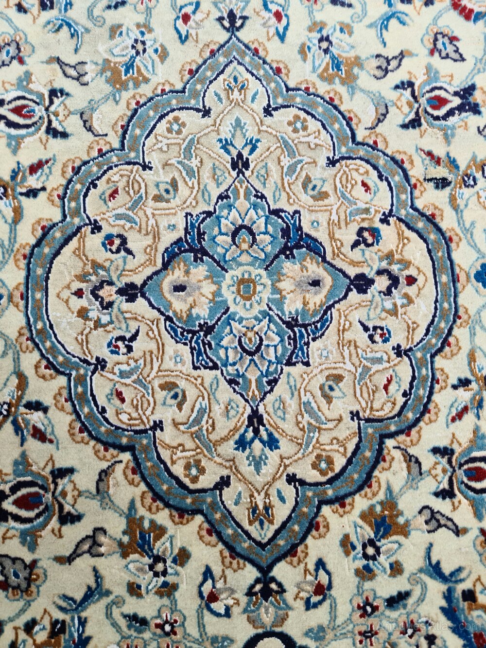 A beautiful vintage Nain rug in wonderful conditon. Beautiful colours with silk and medallion to the centre, rugs of this quality lift the ambience of any room.