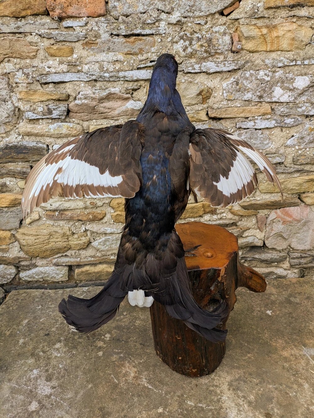 The bird is in excellent condition and well modelled. It’s a great imposing stance with much impact measuring 70 cms in height overall. It is 60 cms wide across the wingspan and The log is 20 cms in diameter.